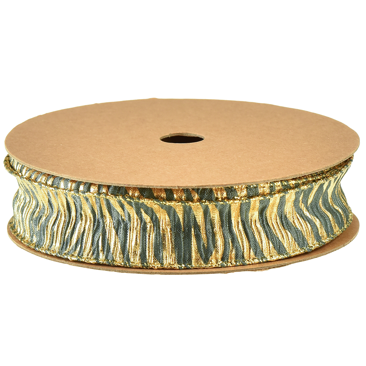 Produktnavn: Chiffon dekorativt bånd i grønt/gull, 25 mm bredde, 15 m lengde - ideell for gaveinnpakning
