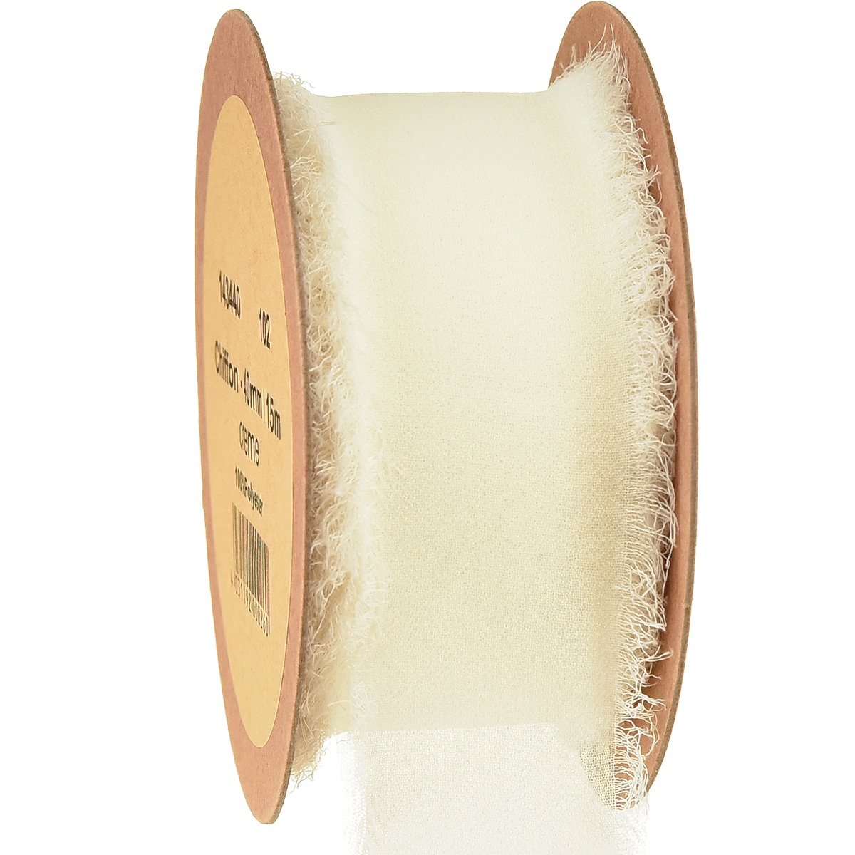 Tips: Kombiner krembåndet med det rosa eller hvite polyester chiffonbåndet fra denne serien med frynsede bånd.