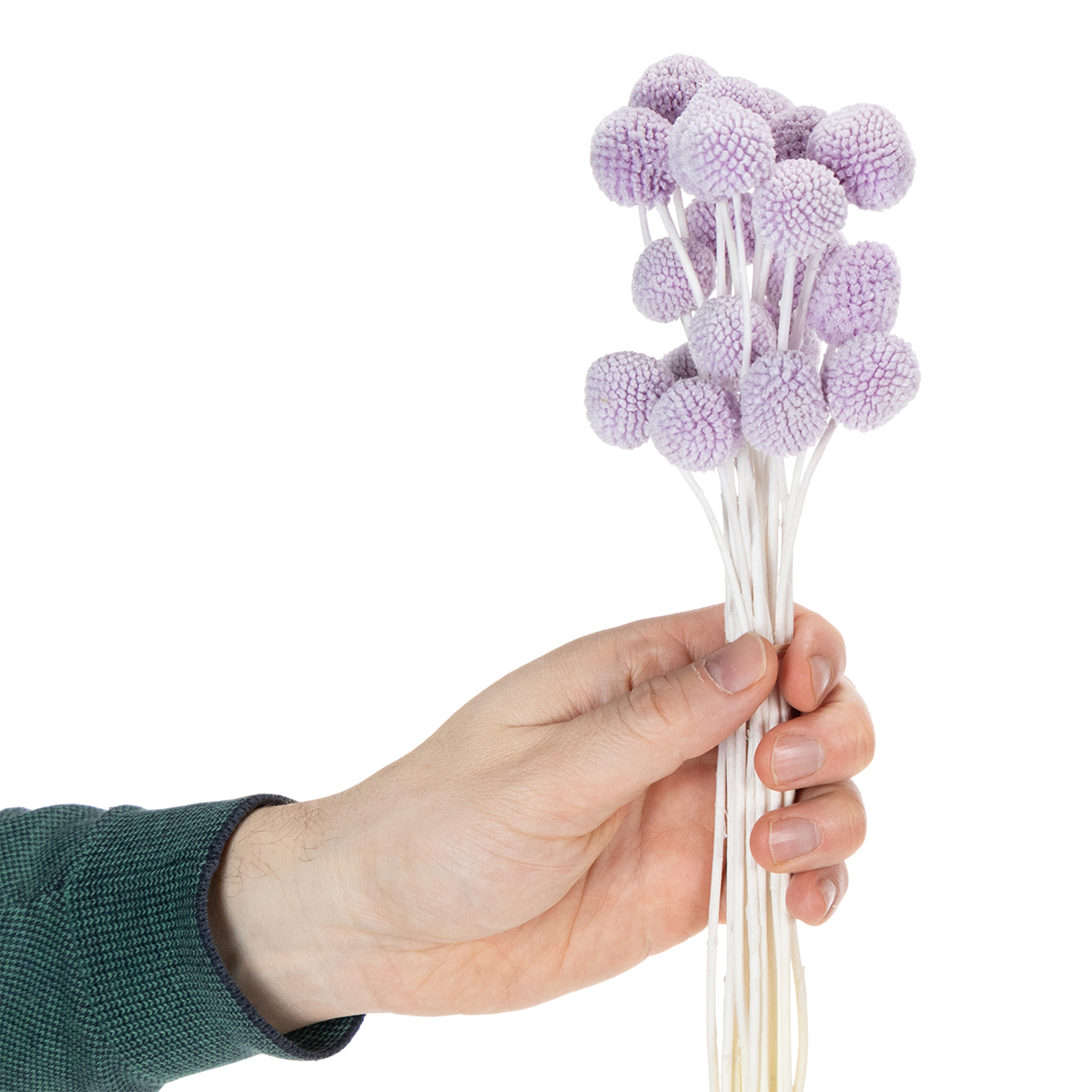 Med sine særegne, runde hoder og naturfargede stilker gir tørkede Craspedia-blomster en moderne, men tidløs sjarm til omgivelsene dine. Den subtile lyslilla fargen komplementerer både minimalistiske og livlige fargevalg. Enten du vil forbedre stuebordet, kontoret eller ditt neste arrangement, gjør den langvarige skjønnheten til disse dekorative blomstene dem til et allsidig høydepunkt. Kombiner dem med andre tørkede prydblomster eller vis dem frem alene. De er spesielt godt egnet for gjør-det-selv-dekorasjonsprosjekter, kreative vasearrangementer eller for å legge til elegante, stilige detaljer i ethvert hjørne.