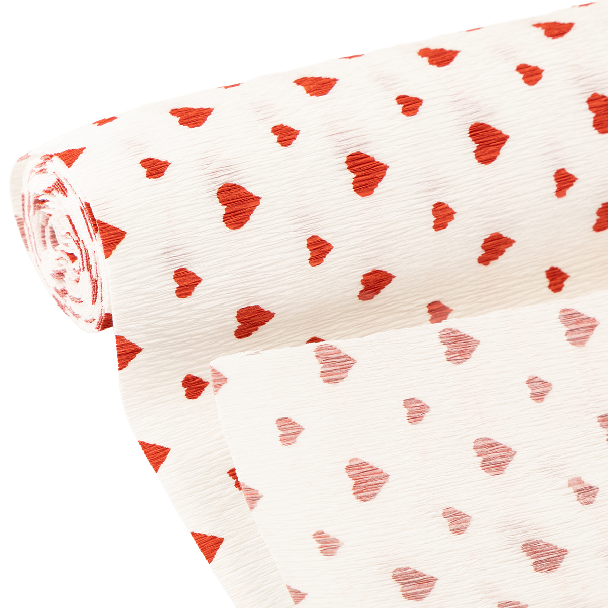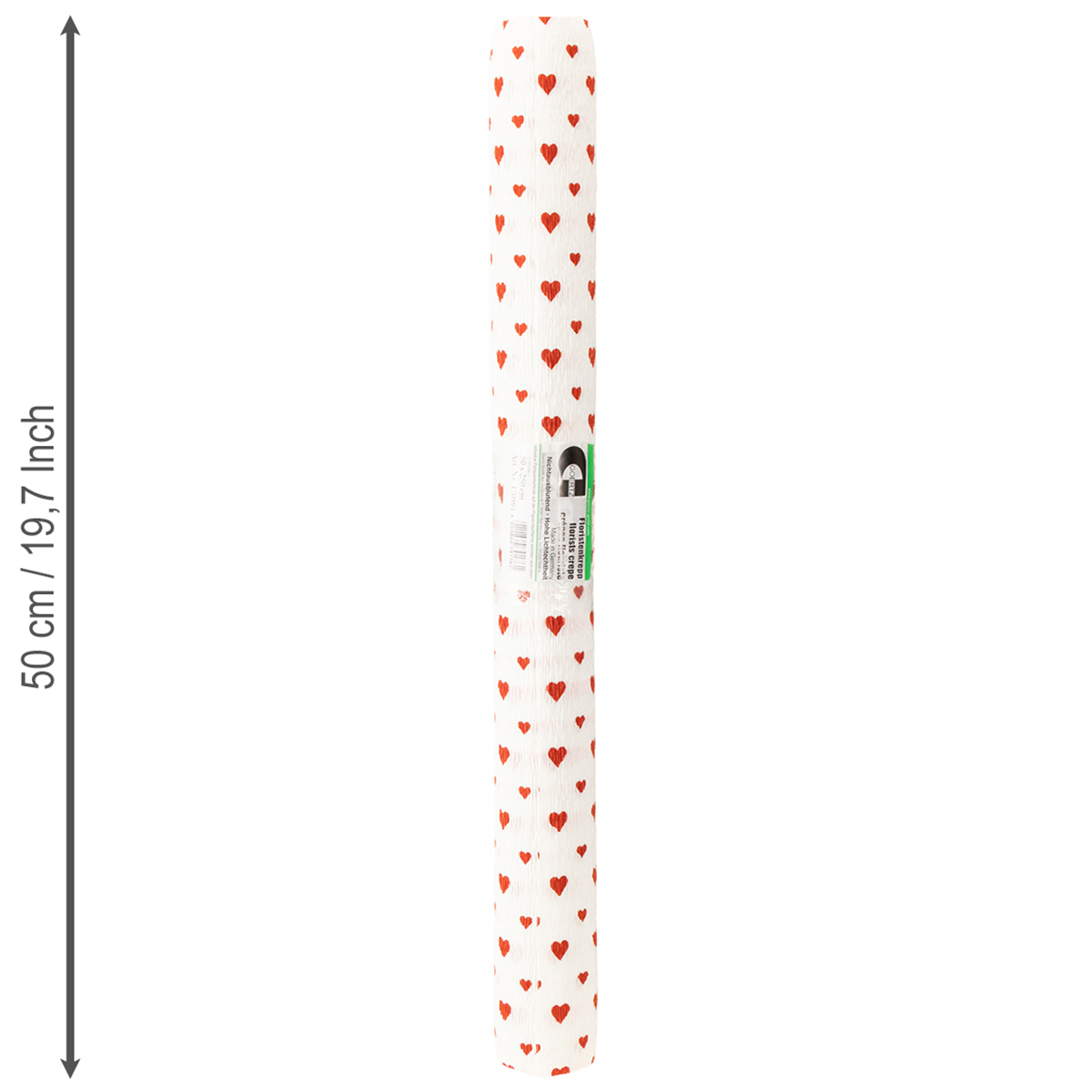 Produktnavn: Crepe Paper with Hearts Blomsterhandler Crepe Morsdag Rød, Hvit 50×250cm