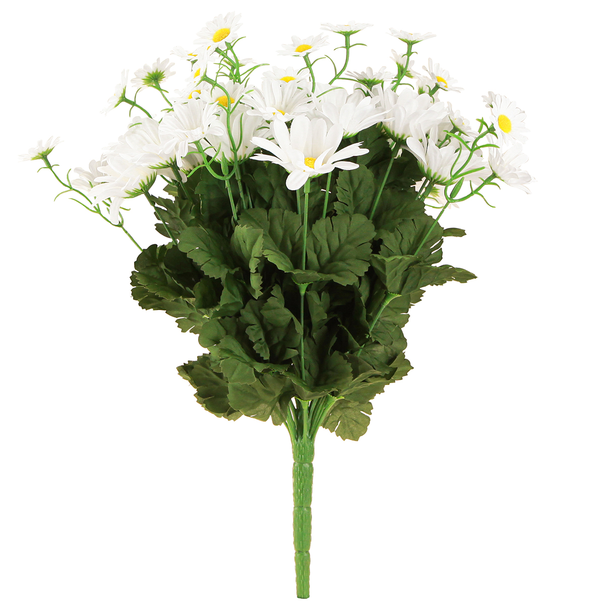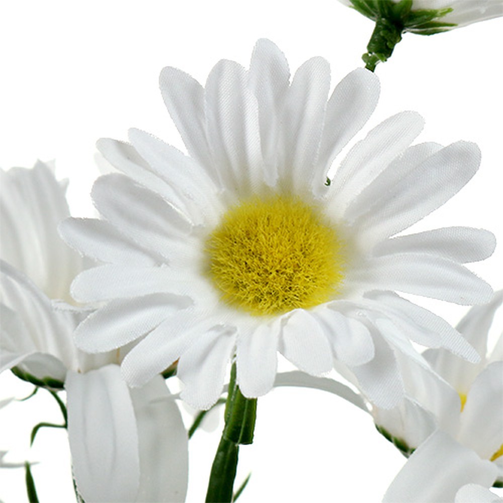 Tusenfrydbuketten i hvitt har en total lengde på ca 45 centimeter og blomsterhodene er ca 6 til 8 centimeter i diameter.
