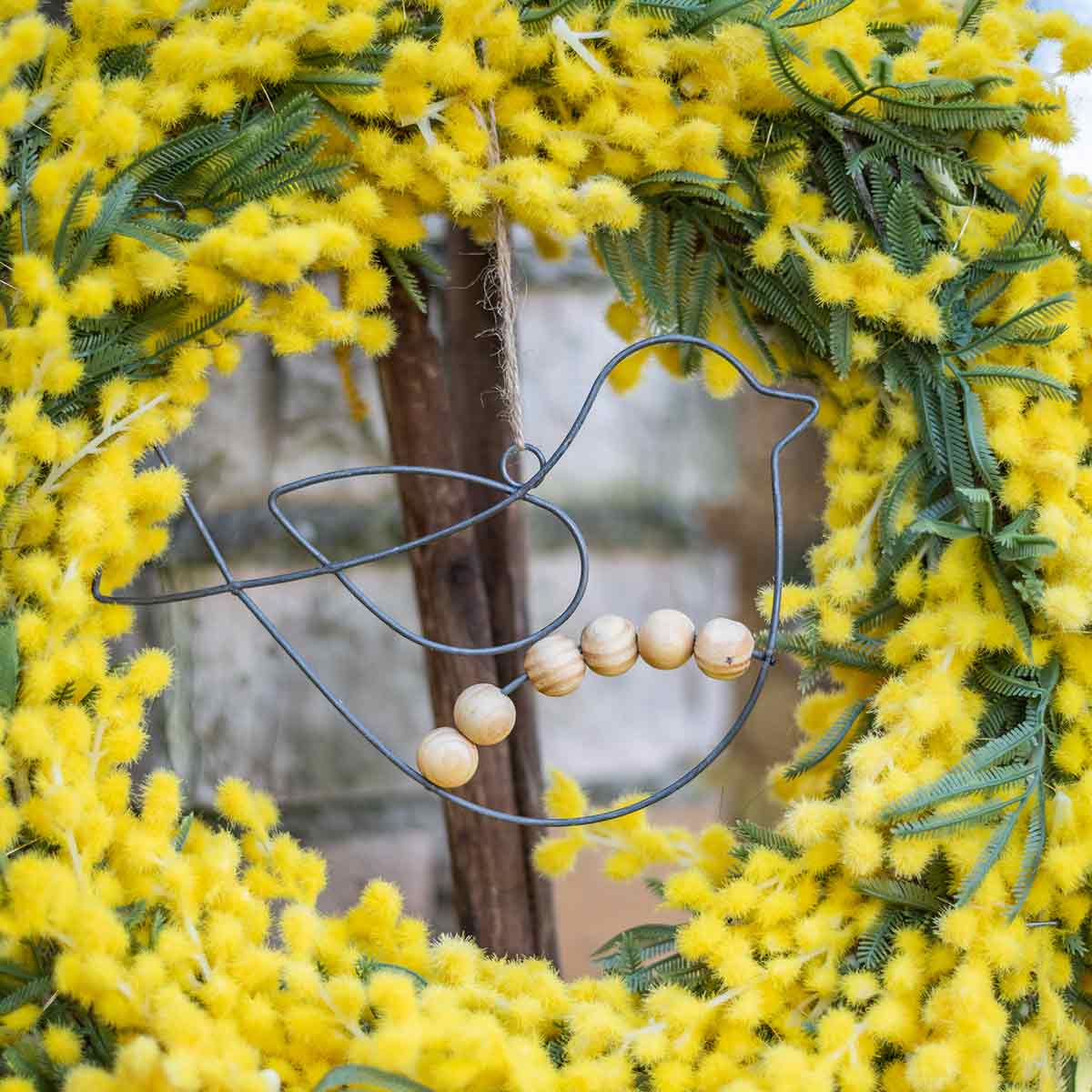 Vårdekorasjonen laget av metall med treperler er en elegant dekorativ henger til veggen, i en krans, men også som vindusdekorasjon. Det dekorative anhenget ser like pent ut fra høyre og venstre, så du kan også henge fuglen i taket midt i rommet som en hengende dekorasjon.