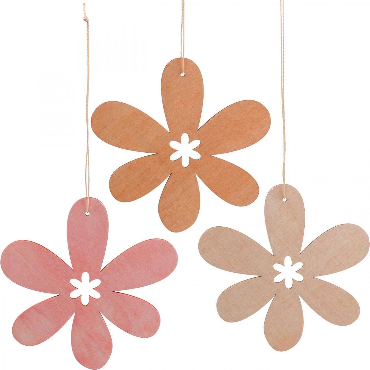 Deco blomst treanheng treblomst oransje/rosa/gul 12 stk.