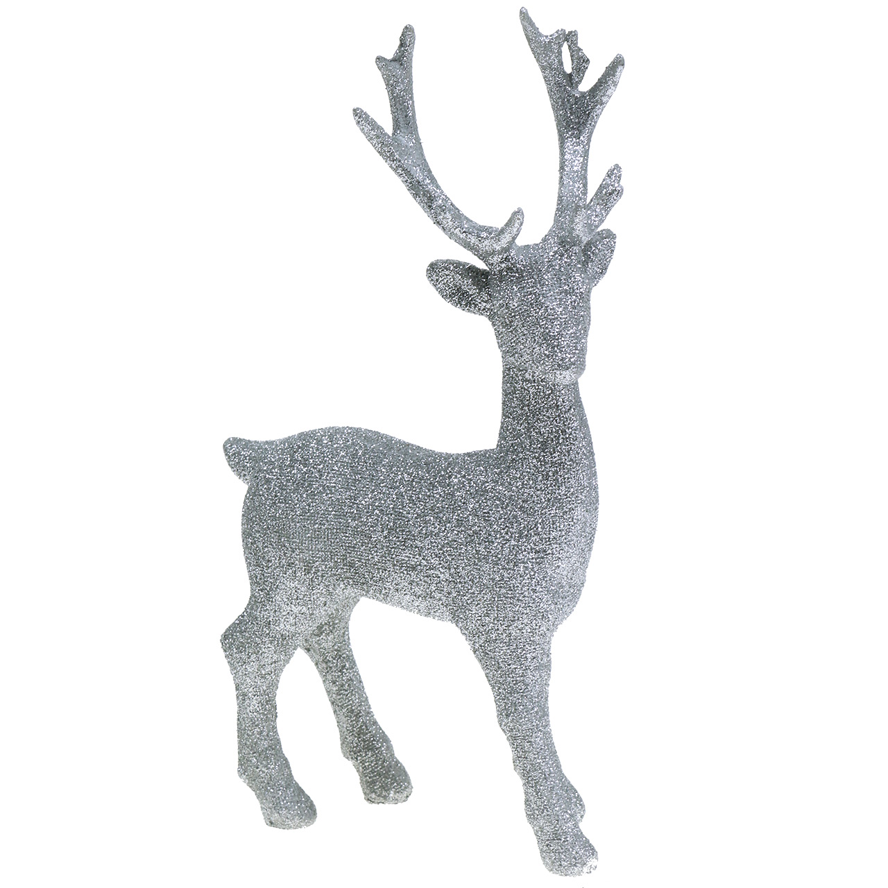 Produktnavn: Deco figur hjort sølv glitter 25cm x 12cm
