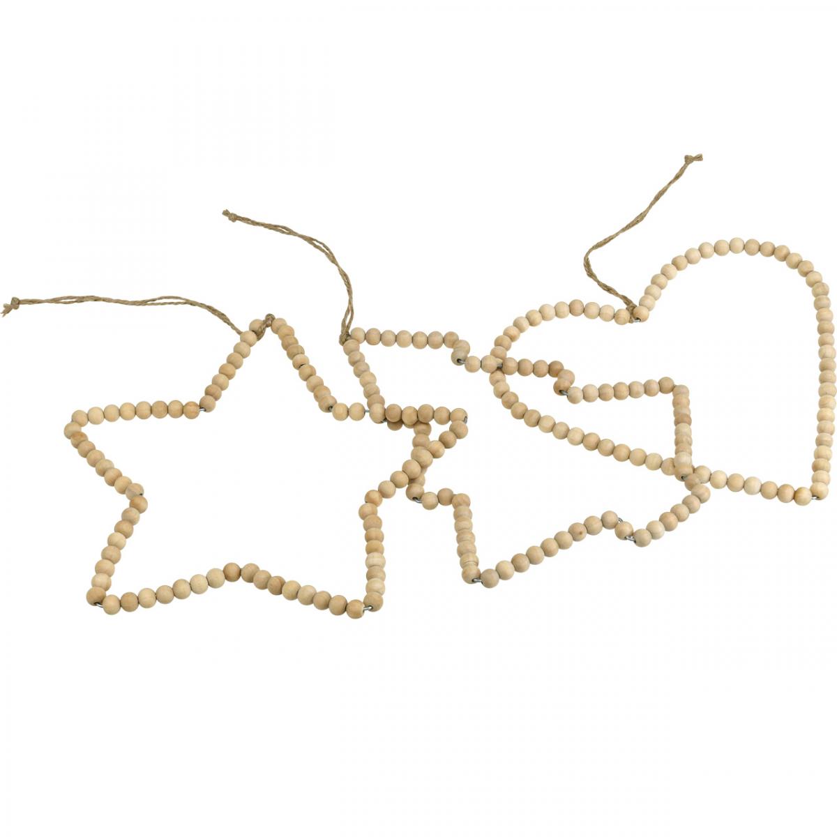 Vil du integrere enda flere dekorative ringer med treperler i julepynten din? Skjemaene som presenteres her er også tilgjengelige i andre versjoner. Vi har også sirkulære dekorative ringer med større treperler.