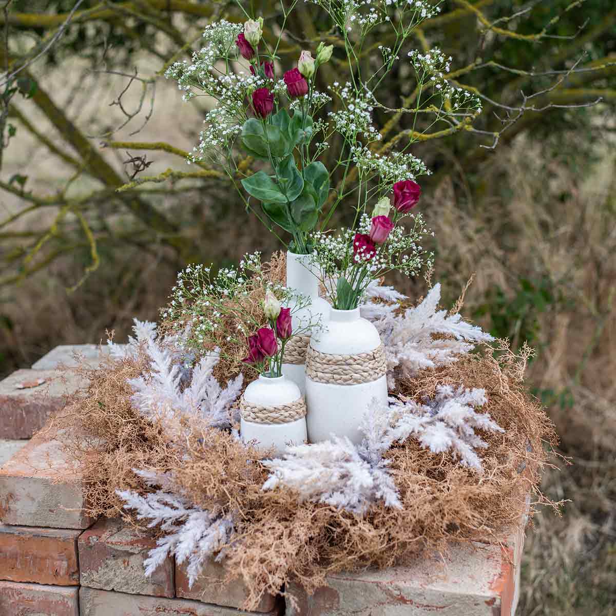 Dette betyr at den dekorative kransen med kunstig tørt gress lett kan brukes som borddekorasjon eller du kan rett og slett henge den på veggen. Du kan dekorere kransen med fargede bånd, eller du kan også feste eller feste silkeblomster eller sesongbaserte tilbehør som anheng til den.