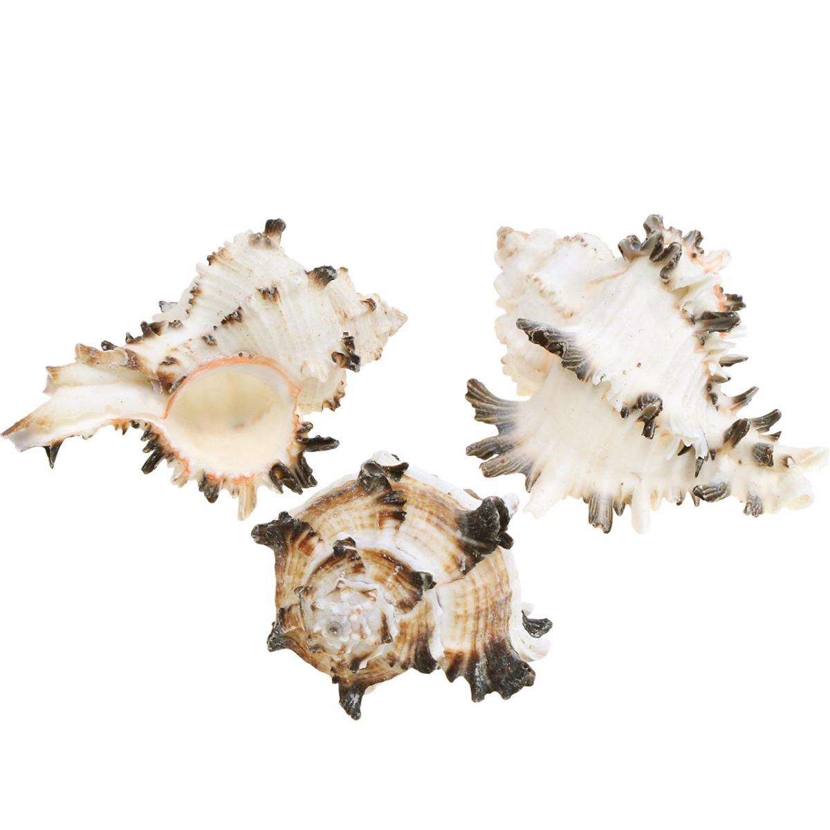 De vakre dekorative sneglehusene skaper røre i den naturlige dekorasjonen. Sjøsneglene kommer fra dypet av Indo-Stillehavet og tilhører slekten Murex, piggsneglene. De snøhvite og tabby skjellene til skalldekorasjonen er ekstremt pittoreske. Hver naturlig snegl er nøye utvalgt, tømt og renset for den eksklusive maritime dekorasjonen.