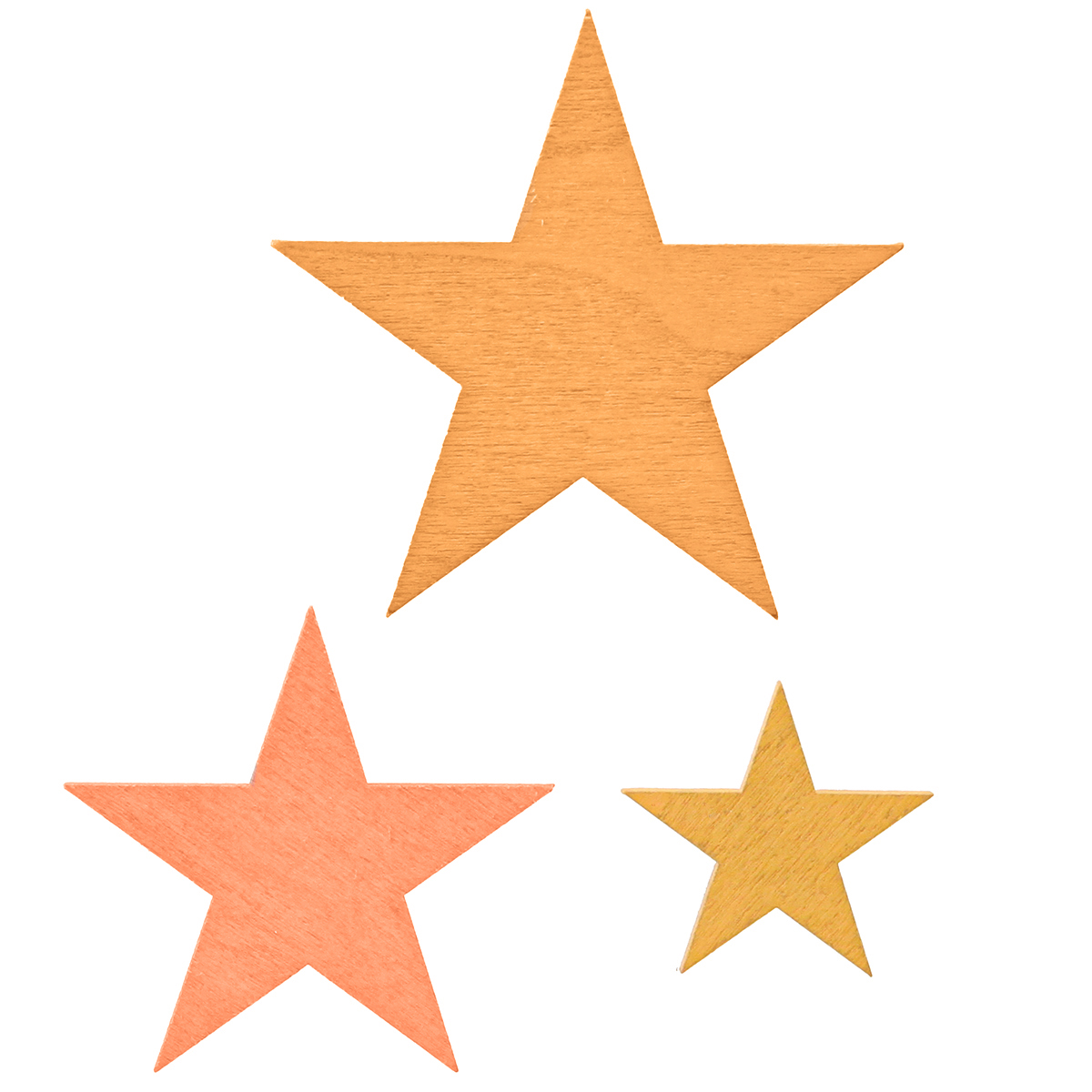 Dekorasjonsstjerner i tre oransje 3 farger Ø3,5/5,5/7 cm 48 stk