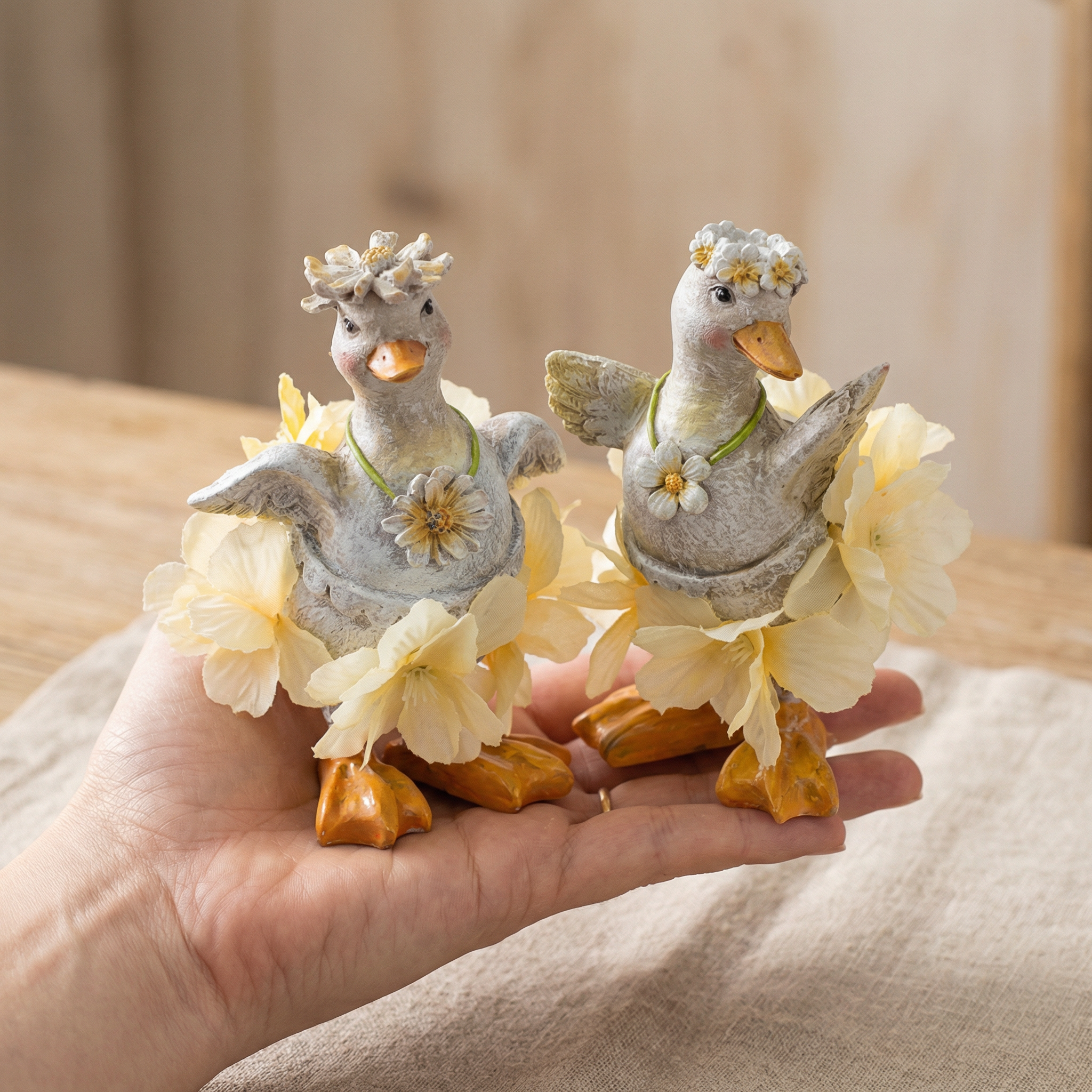 Dekorative andefigurer med blomster – et sjarmerende sett til vår- og sommerdekorasjonene dine