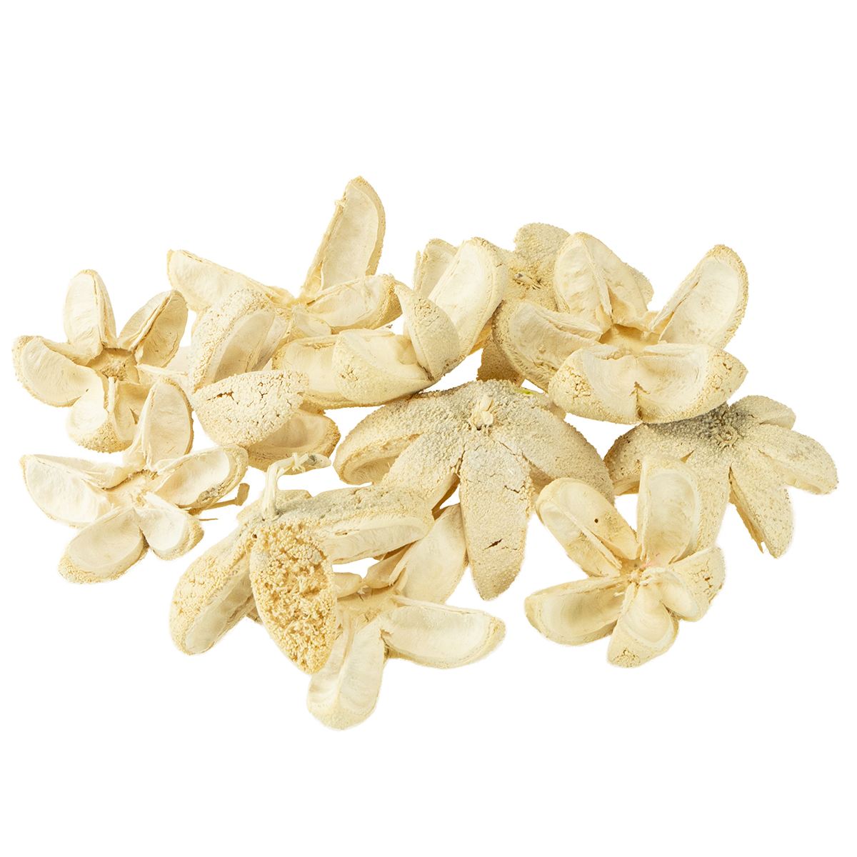 Den blekede Bullet Flower kommer i en pose som inneholder 12 stk. Som et naturprodukt har hver tørket frukt forskjellige størrelser. Frukten kan være mellom 3 og 6 centimeter lang og ha en diameter på omtrent 3,5 til omtrent 7 centimeter.