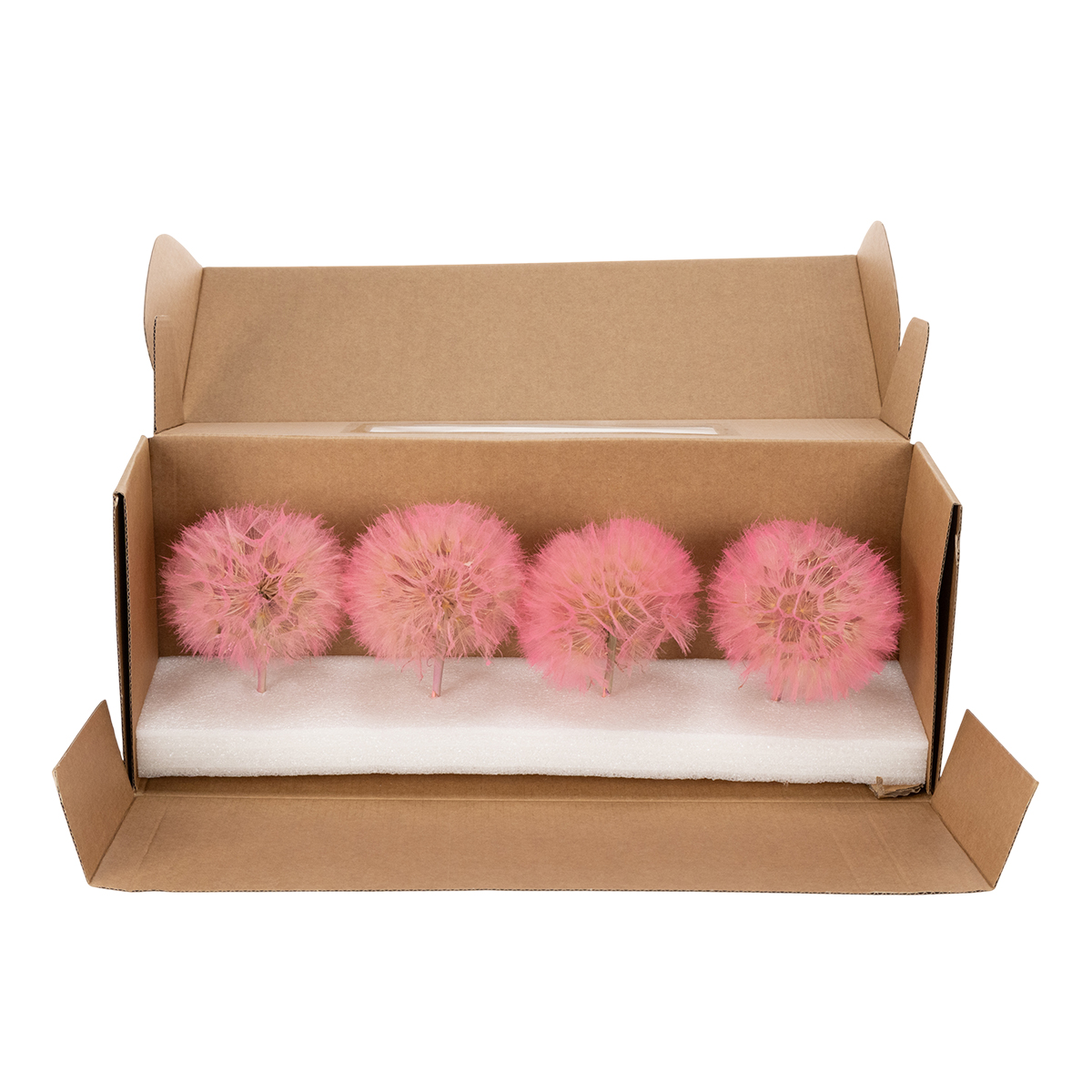 I blomsterspråket representerer løvetannen ønsker, drømmer og nye begynnelser – et symbol på håp og harmoni. Den rosa fargen understreker denne betydningen med et snev av romantikk og øm kjærlighet. Innendørs skaper den en beroligende atmosfære og passer perfekt inn i rom som er ment å utstråle balanse og eleganse. Kombiner den med hvite eller kremfargede dekorative elementer for en spesielt harmonisk effekt.