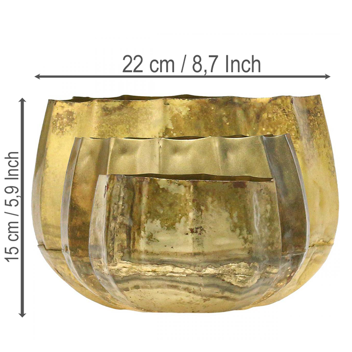 Presenter dine blomsterkunstverk på en spesielt elegant måte med den dekorative skålen i messing. Du får messingkarene som et sett med tre forskjellige størrelser.