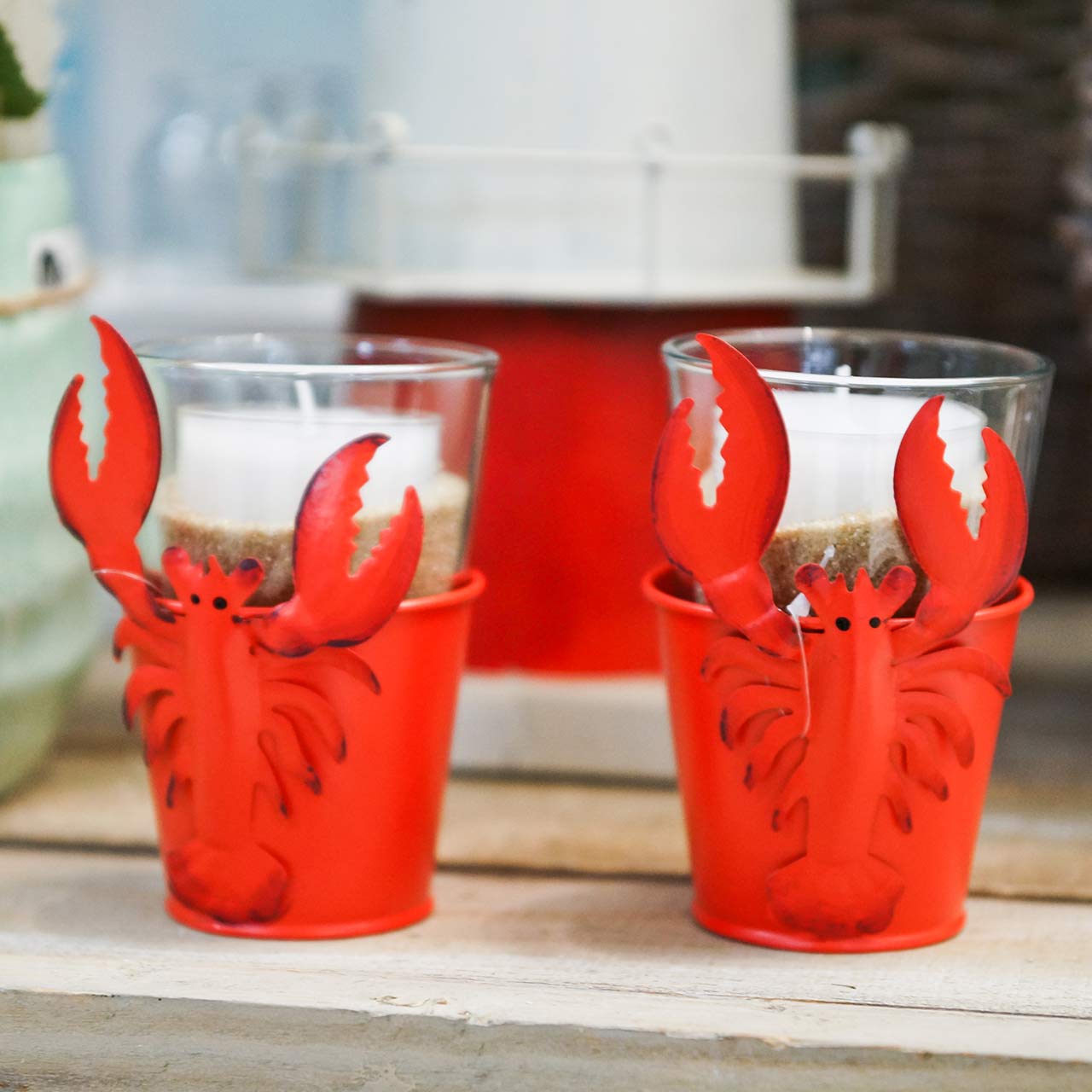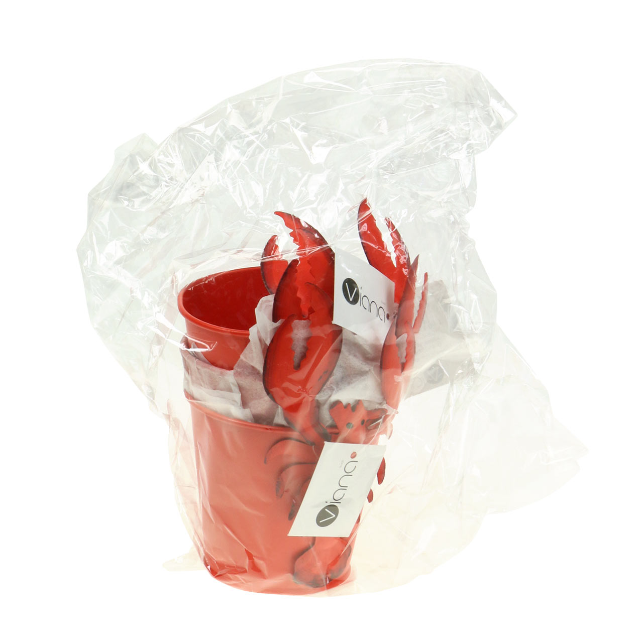 Dekorativ bøtte hummer metall rød Ø8cm H13cm 3 stk