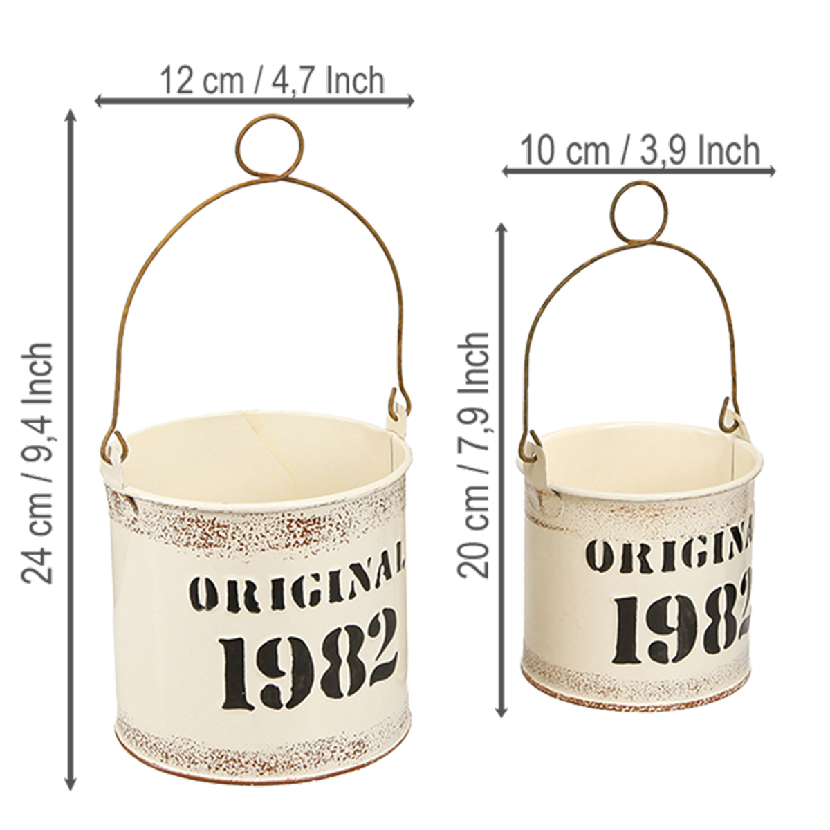Dekorativ bøtte med håndtak «Original 1982» Kremfarget Ø12/10 cm 2×2-delt sett