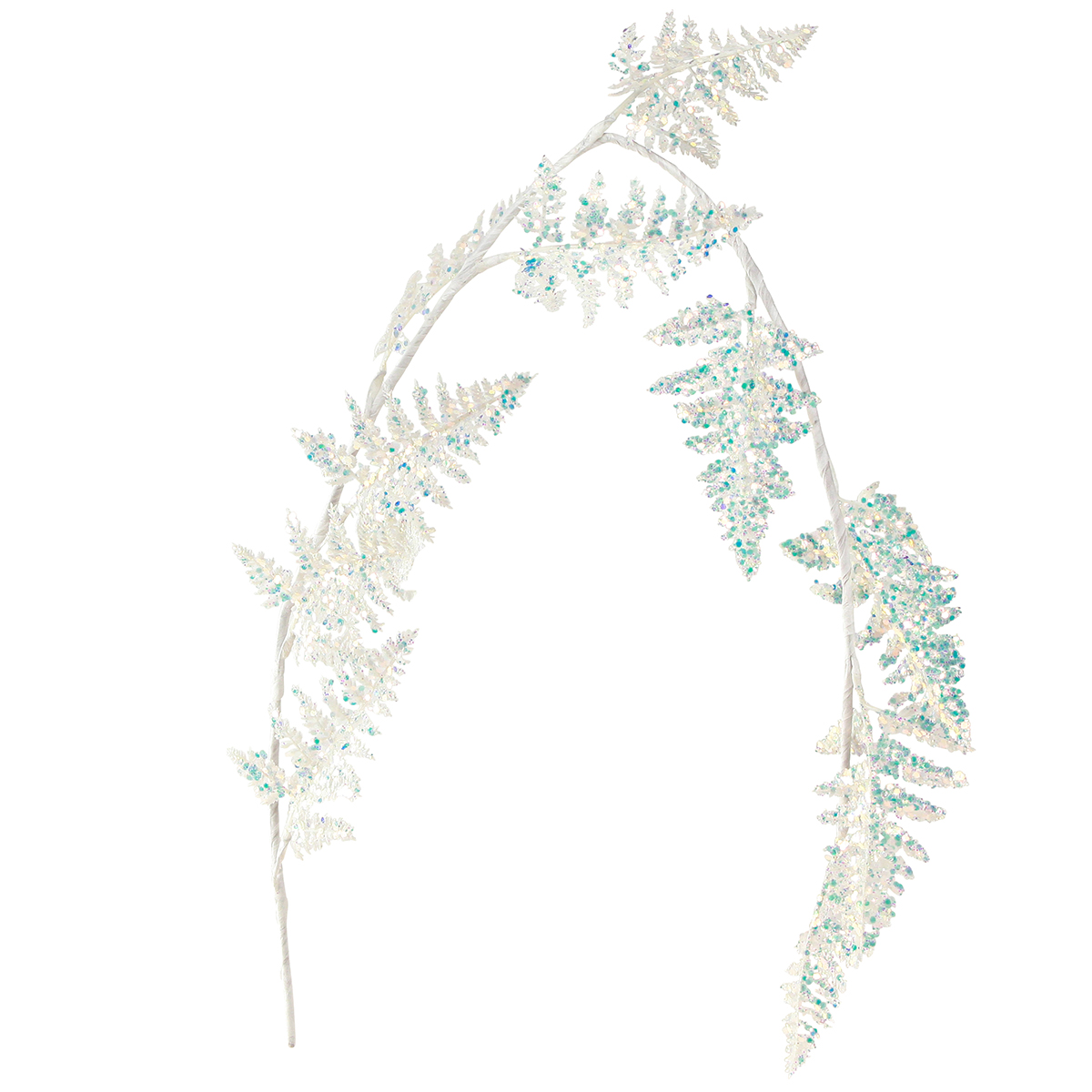 Dekorativ bregne for oppheng av hvit blå glitter vinter L110cm