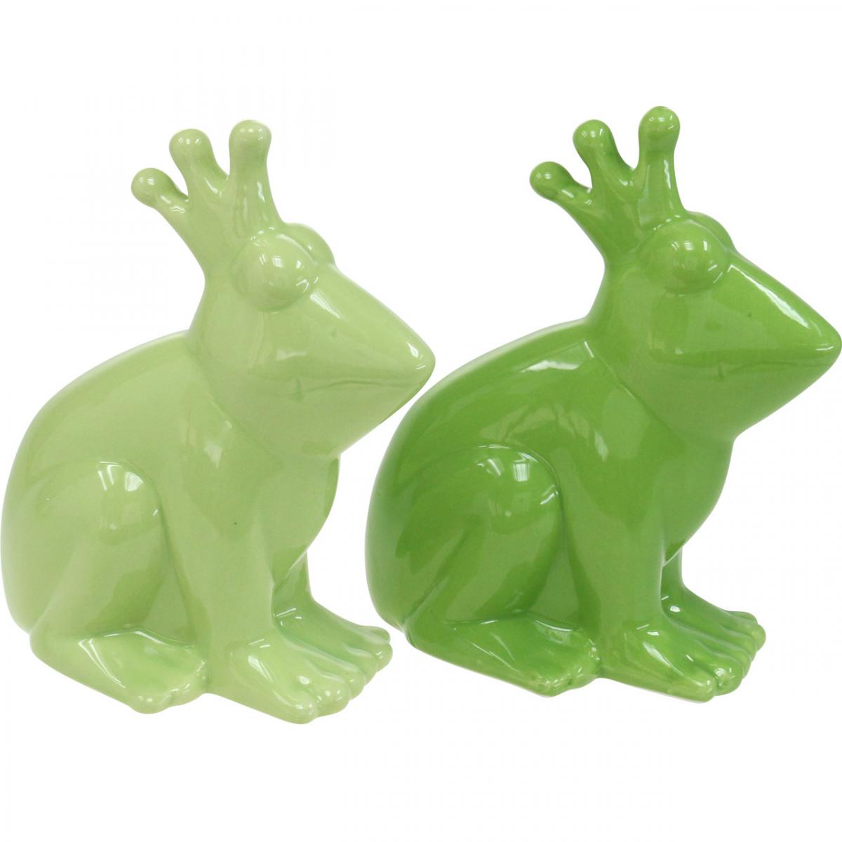 Begge froskefigurene er dekket med en skinnende glasur. Den ene froskeprinsen er lysegrønn i fargen og den andre er mørkegrønn i fargen. Detaljene til den dekorative figuren, som kronen, hodet og bena, er ikke for fancy, men inspirerer med sin elegante enkelhet.