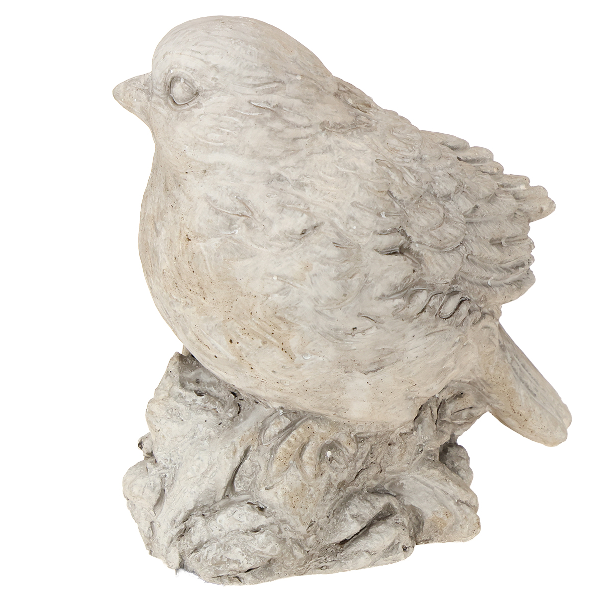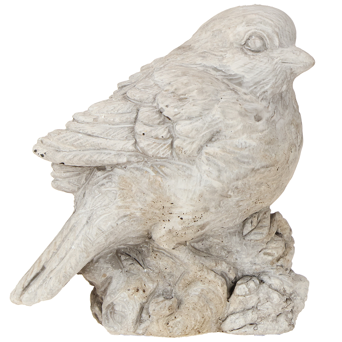 Dekorativ fuglefigur spurv støpt stein hvitvasket H12,5 cm
