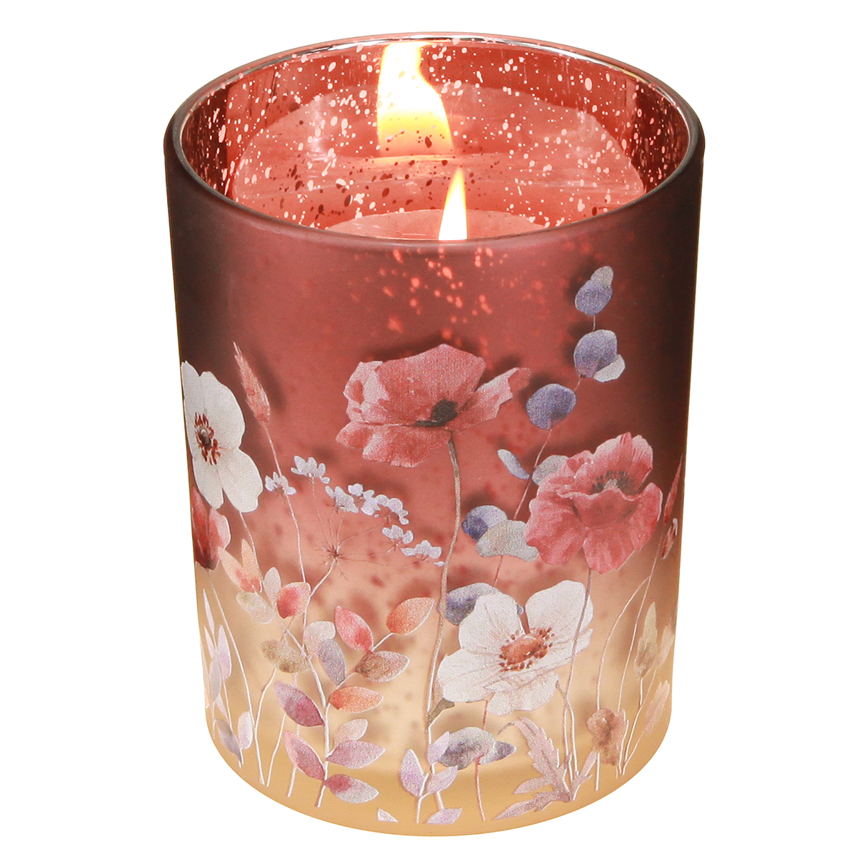 En virkelig fortryllende lysestake. Enten på balkongen en koselig sommerkveld, i stuen for en varm og innbydende atmosfære, eller som et stilig midtpunkt på det vakkert dekkede bordet ditt – denne dekorative glasslysestaken vil garantert glede. Det sjarmerende blomstermønsteret i delikate røde nyanser og livlige detaljer vil puste nytt liv i innredningen din og tilføre et snev av romantikk. Det myke stearinlyset som filtreres gjennom blomstermønsteret skaper et varmt og innbydende lysspill. Perfekt for de som søker noe spesielt og som setter pris på stilige detaljer. Og hvem elsker ikke å fylle hjemmet sitt med et snev av natur og eleganse på lune kvelder?