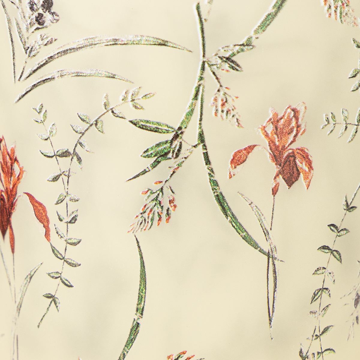 Denne dekorative glasslykten imponerer med sitt sofistikerte design, med blomstermotiver i beige, grønt og rødt som skaper et harmonisk helhetsinntrykk. Med en høyde på 8 cm og en diameter på 7,5 cm passer den perfekt på ethvert bord, hylle eller vinduskarm. Det høykvalitetsglasset, delikat utsmykket med blomster og gress, bringer et snev av vintage-romanse til ethvert rom. Enten den brukes som lysestake eller bare som et dekorativt stykke, gjør denne lykten alltid et slående inntrykk. Dens spesielle sjarm ligger i blomstermønsteret, som virkelig kommer til live når det tennes av levende lys. De varme lysrefleksjonene skaper en koselig atmosfære hver kveld, og inviterer deg til å bli værende. For de som foretrekker et naturlig utseende, kan den vakkert kombineres med tre- eller naturdekorasjoner. Takket være det nøytrale fargevalget komplementerer lykten både minimalistiske og rustikke interiørstiler. Praktisk nok inneholder settet fire lykter som du kan arrangere som du ønsker – individuelt, i grupper eller som et midtpunkt.