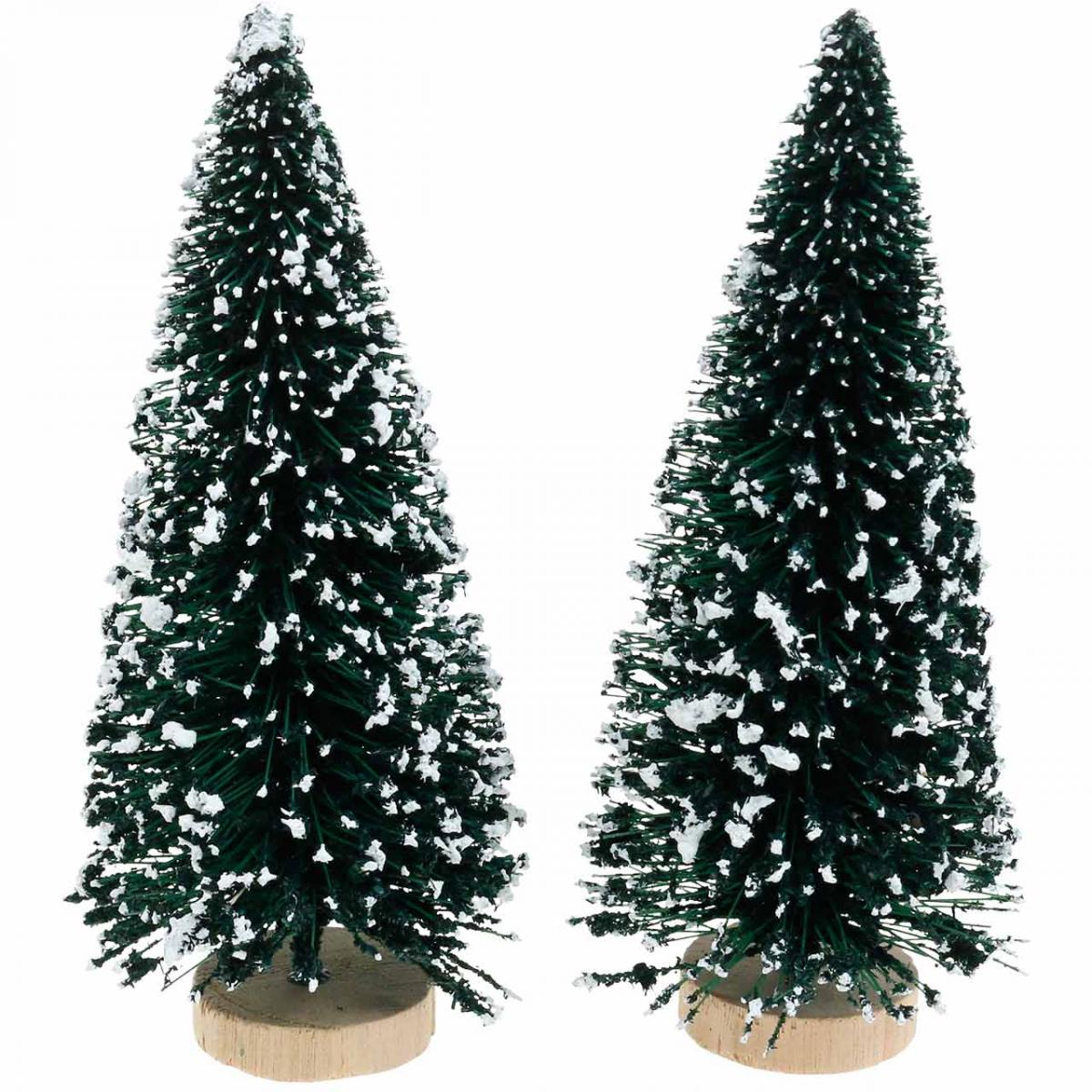 Dekorativ gran med snø, julepynt, advent H13cm Ø5,5cm 2 stk