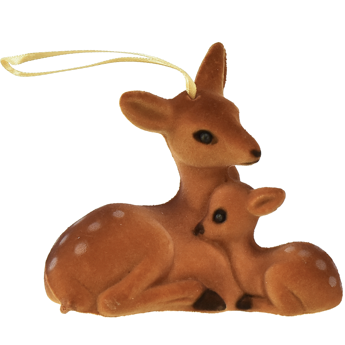 Dekorativ henger hjort dekorasjon med fawn flokket 10cmx5cmx8,5cm