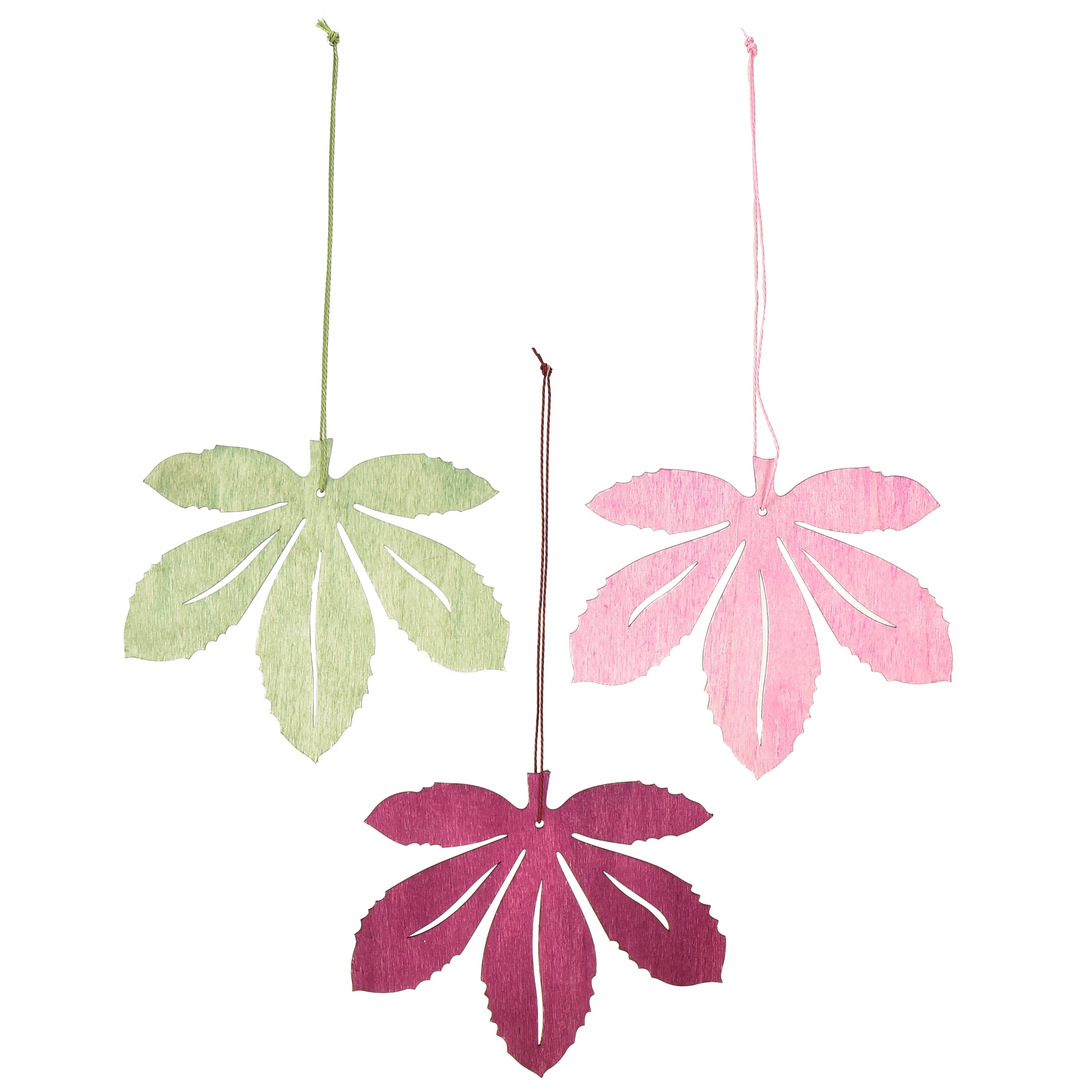 Produktnavn: Dekorativ henger tre høstløv rosa lilla grønn 12x10cm 12 stk