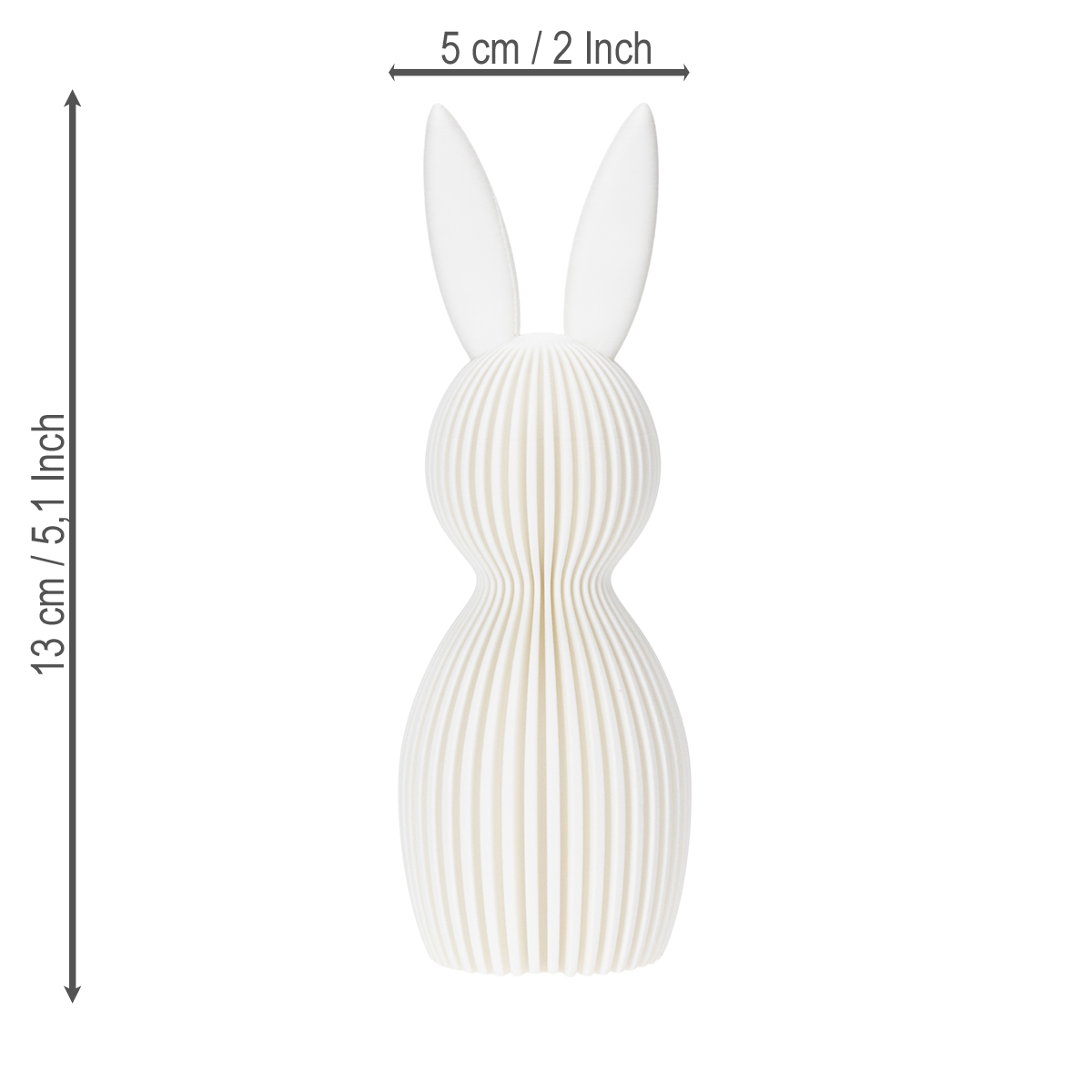 Opplev elegant design på sitt beste! Denne dekorative kaninfiguren med sitt moderne, brettede utseende er et sant høydepunkt for elskere av moderne og minimalistisk interiør. Med en høyde på bare 13 cm og en diameter på 5 cm integreres denne kaninen uanstrengt i ethvert miljø uten å være påtrengende. Den hvite fargen harmonerer vakkert med ulike interiørstiler – fra skandinavisk og minimalistisk til urban-moderne. Bare plasser den på en hylle eller et bord, og kaninen vil gi et stilig preg til rommene dine.