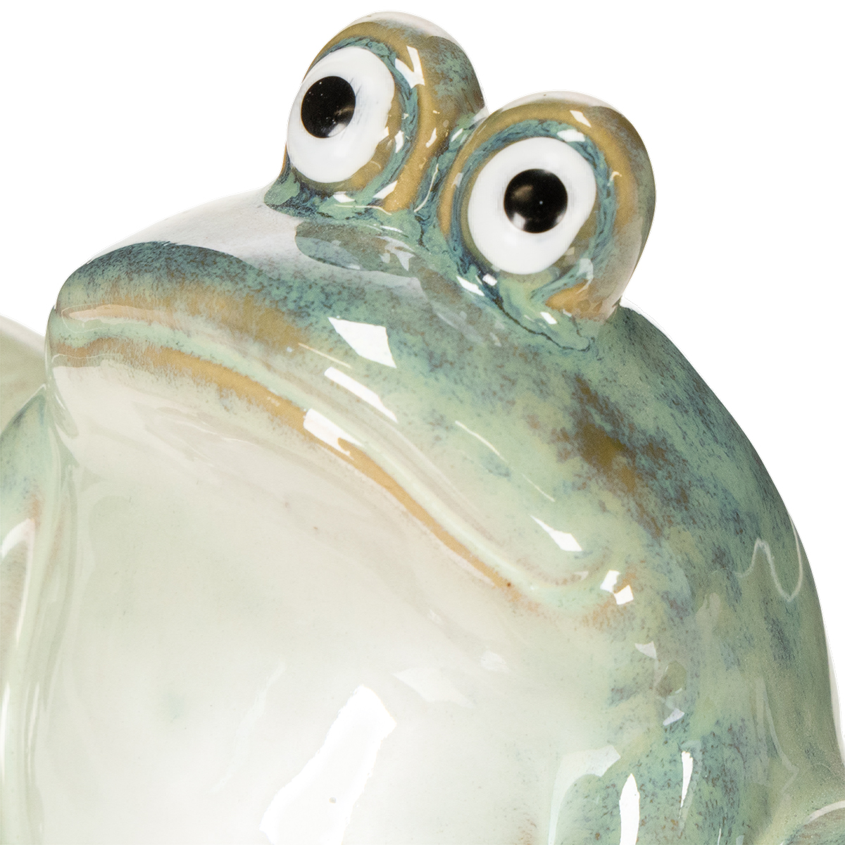 Dekorativ keramisk froskfigur, detaljert design, sjarmerende gaveidé, 13 cm