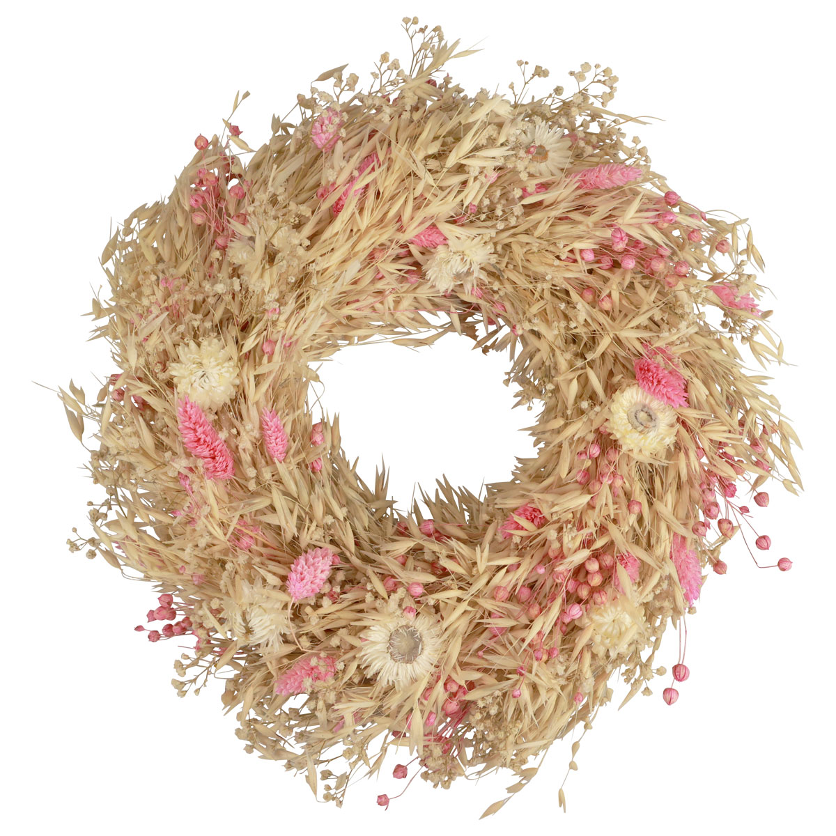 Dekorativ krans havrekrans naturlig krans stråblomster rosa Ø29cm