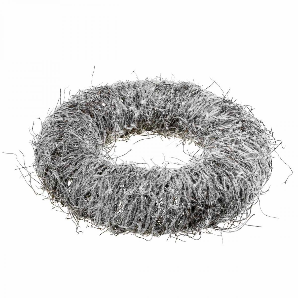 Denne dekorative kransen i et naturlig utseende er en krans av vinstokker som er spesielt imponerende på grunn av sitt snødekte utseende. Den naturlige kransen er dekket over hele med hvite fibre, som gir den dekorative kransen et frostaktig utseende.Design en dørkrans for vinteren med den store blanke kransen eller bruk kransen av grener som grunnlag for en snørik adventskrans.