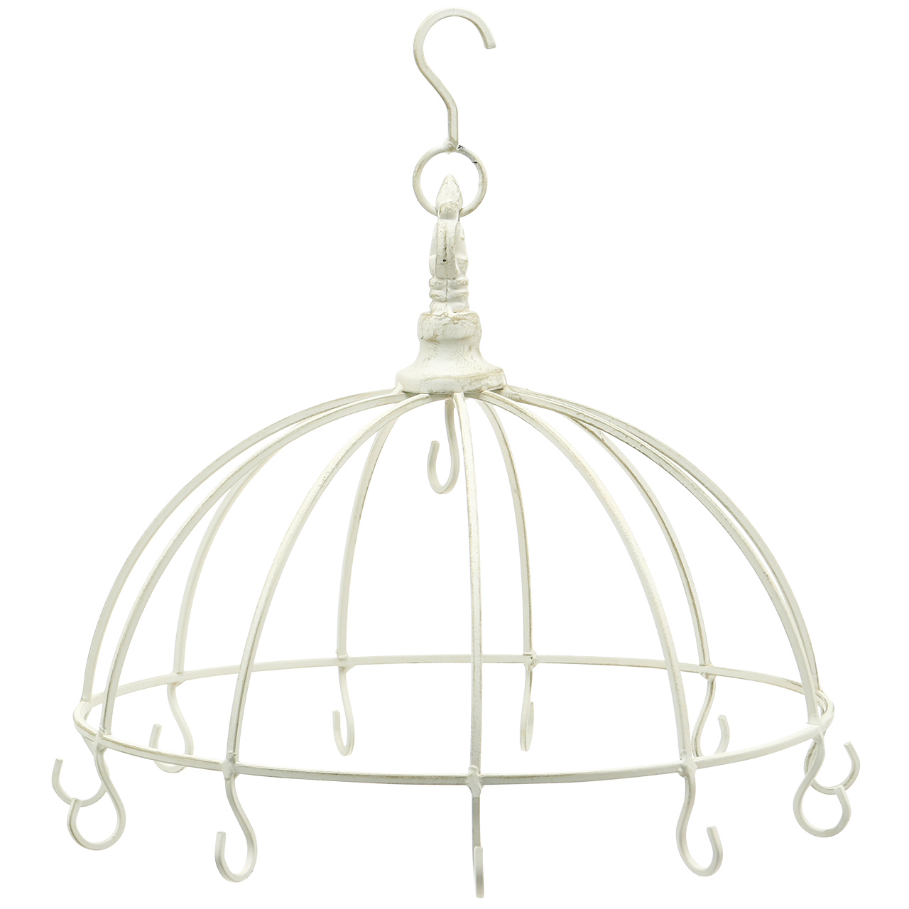 Den vakre dekorative kronen av metall i hvitt har en blomsterdekorert spiss og en stor krok for å henge på toppen. Totalt elleve kroker på den nedre ringen inviterer deg til å dekorere på en rekke måter. Den dekorative ringen har en diameter på ca 29 centimeter. Med kroken er diameteren på den dekorative kronen omtrent 34 centimeter. Kurvens høyde er rundt 17 centimeter. Når den er suspendert, er metallkronen omtrent 32 centimeter høy.