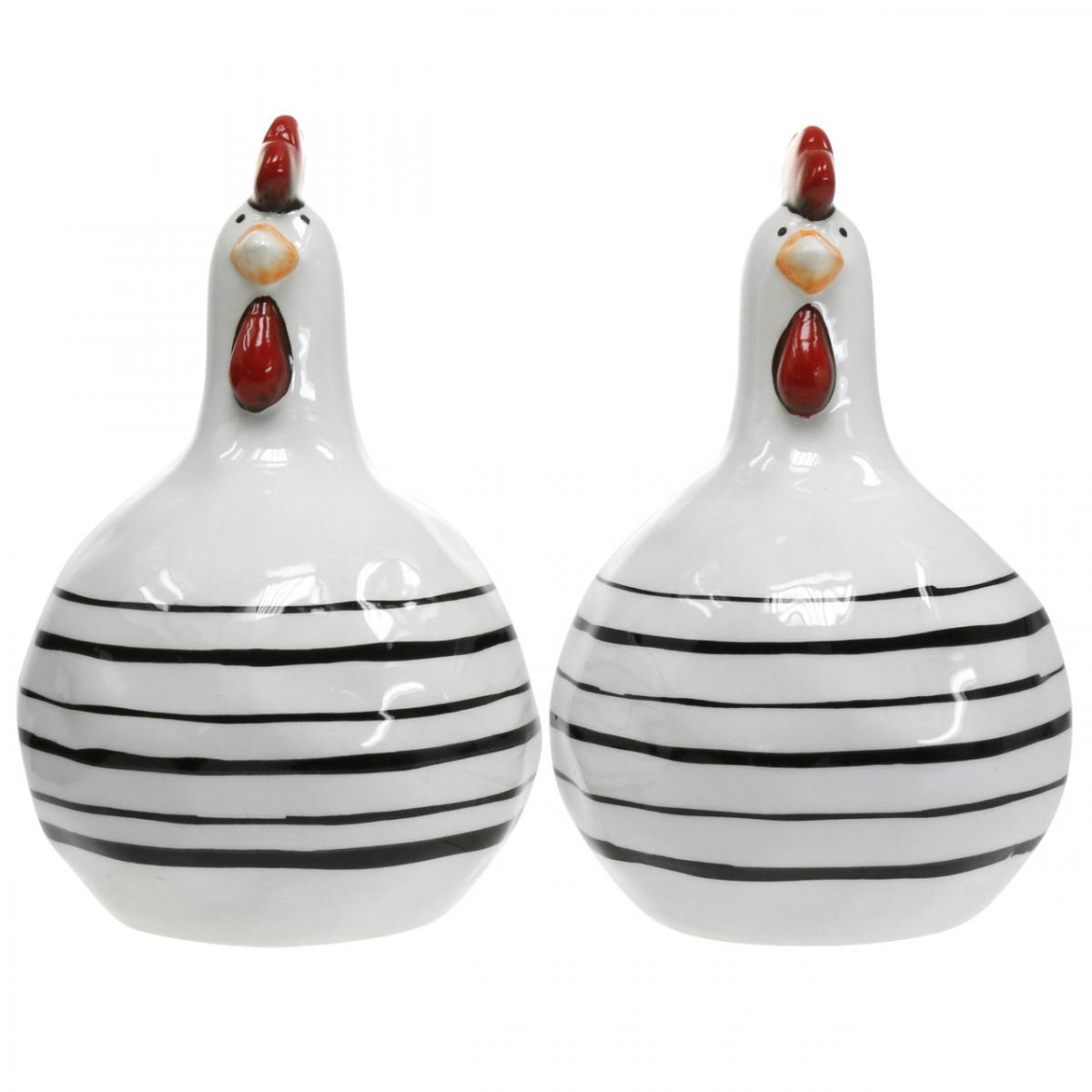 Dekorativ kylling sort og hvit stripet keramikkfigur påske H17cm 2stk