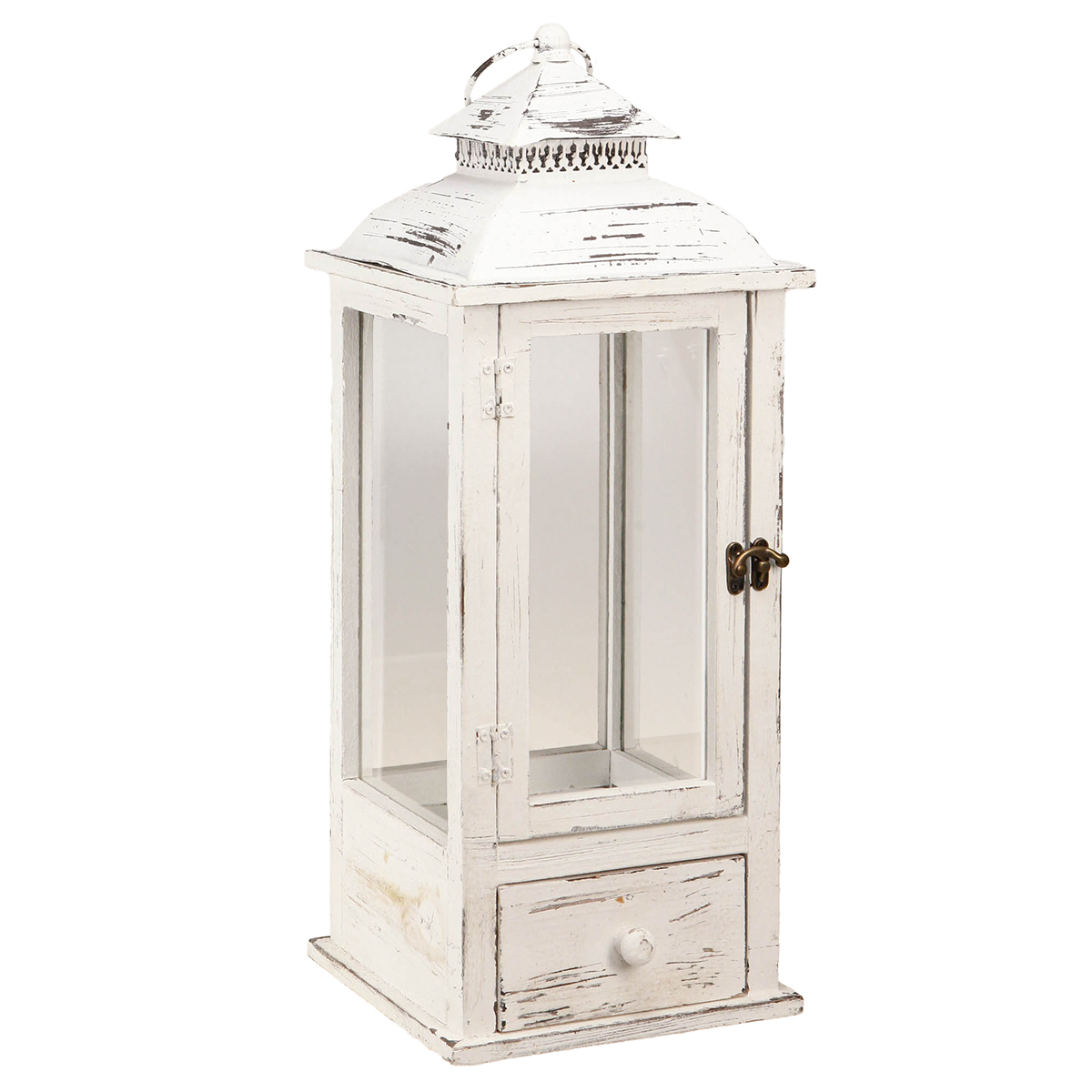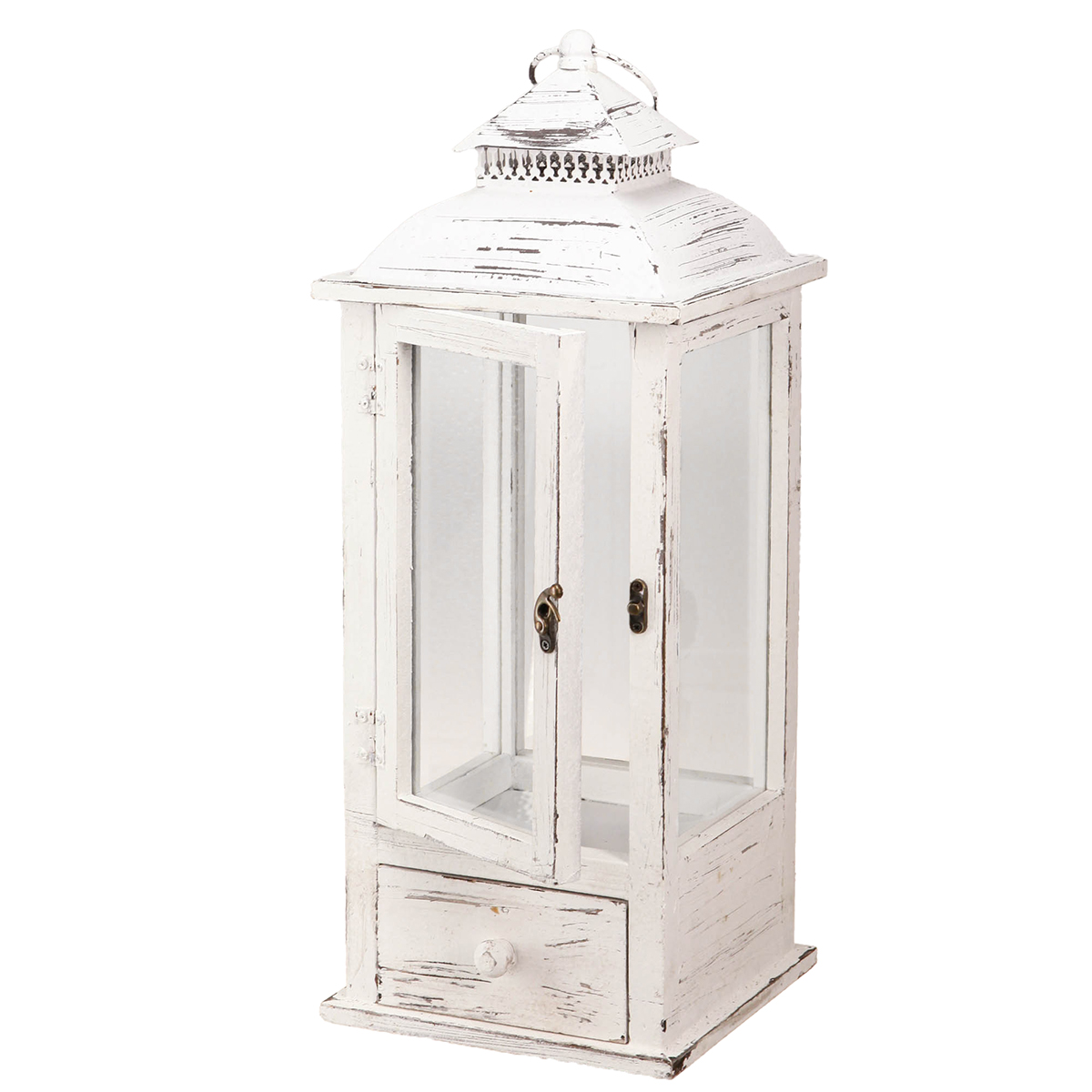 Produktnavn: Dekorativ lanterne vintage med skuff hvit 20×20cm H51cm