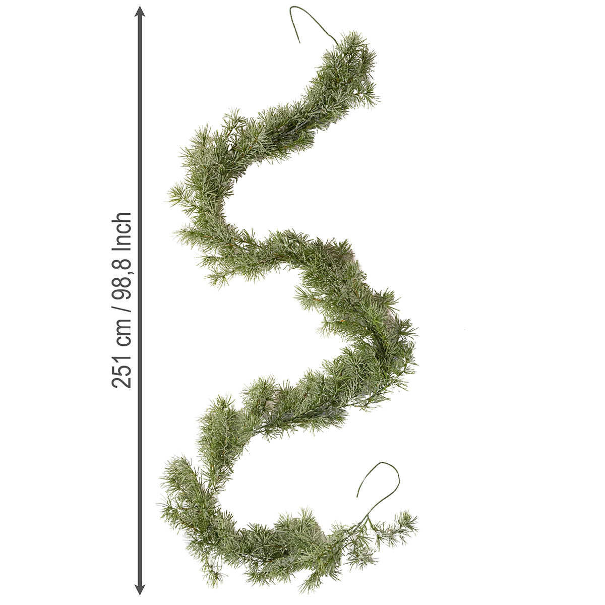Hvem elsker vel ikke den koselige, varme atmosfæren når dagene blir kortere? Vår dekorative lerkgirlander, med sin imponerende lengde på 250 cm, gir et snev av naturlig eleganse til ethvert rom. Leter du etter noe som fanger sjarmen til en ekte grangren, men som er lite vedlikeholdskrevende og ikke feller nåler? Voilà – her er den perfekte løsningen! Med sitt realistiske grønne, frostede utseende er den kunstige lerkgirlanderen et fantastisk alternativ til ekte grangirlandere. Enten det er til jul, høst eller som en tidløs dekorasjon, passer den uanstrengt inn i ethvert dekorasjonskonsept. Har du tenkt på hvor flott den ville sett ut på peishyllen din? Eller viklet rundt trapperekkverket, kombinert med lyslenker og små ornamenter? Lerkgirlanderen er en ekte allrounder og lar kreativiteten din løpe løpsk. La deg bli inspirert og bring et snev av stil og hygge inn i hjemmet ditt!