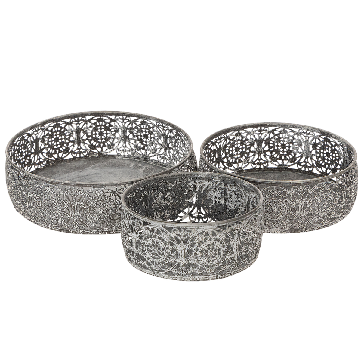 Dekorativ metallskål, grått og hvitt mønster, Ø16/19,5/23,5 cm, sett med 3