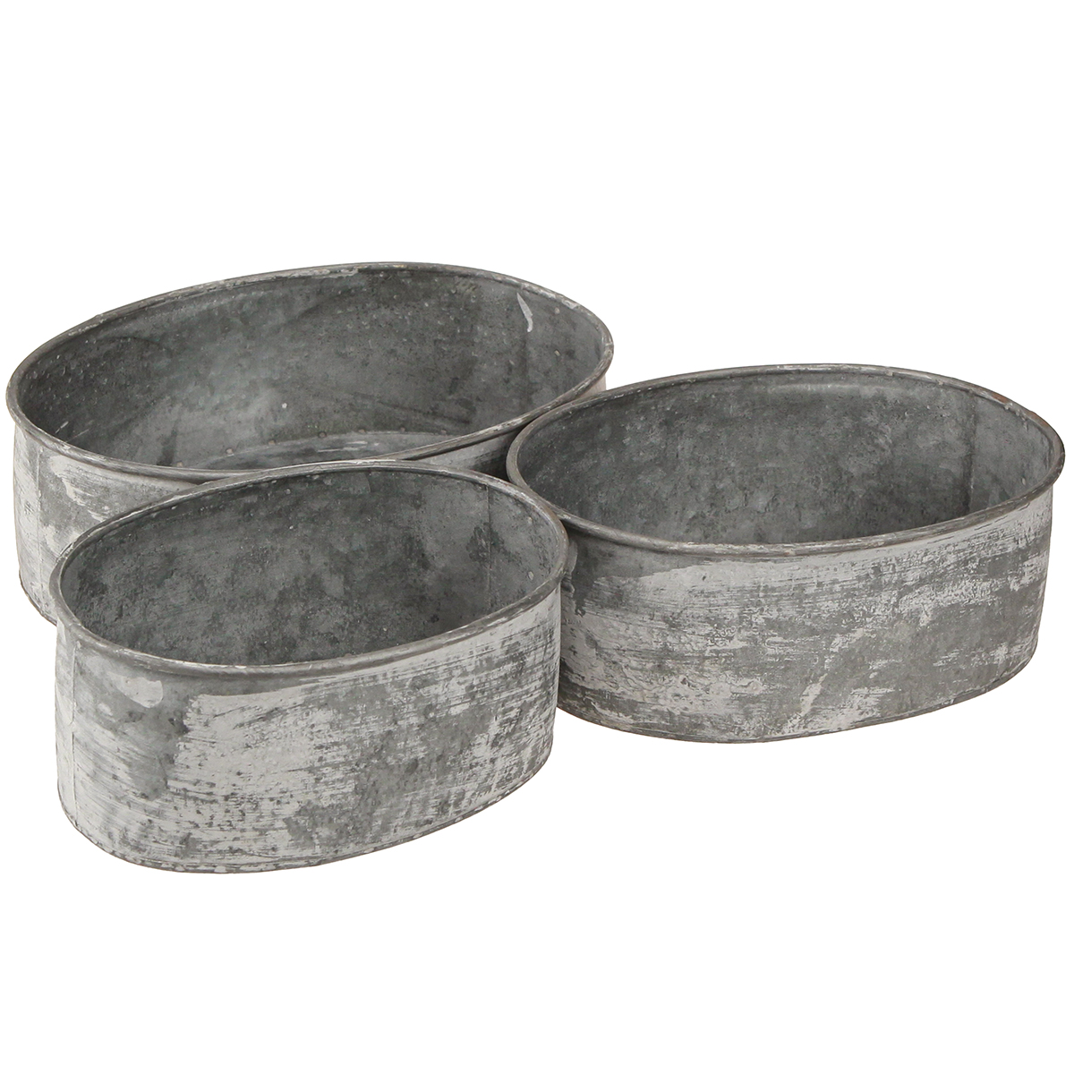 Fyll de dekorative metallskålene med blomsterskum og du har tre blomsterskåler! De ovale metallskålene har en behagelig høyde og ser nesten ut som miniblomstbaljer.
