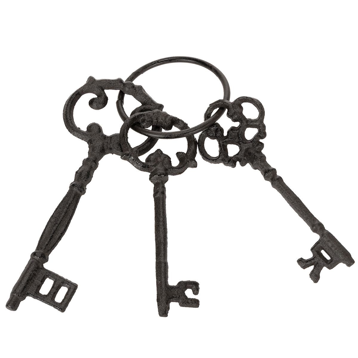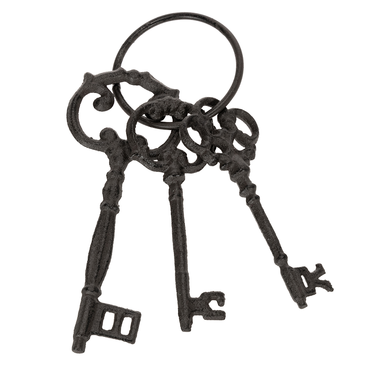 - Design: tre forskjellige nøkler i former som minner om antikke modeller, festet til en ring