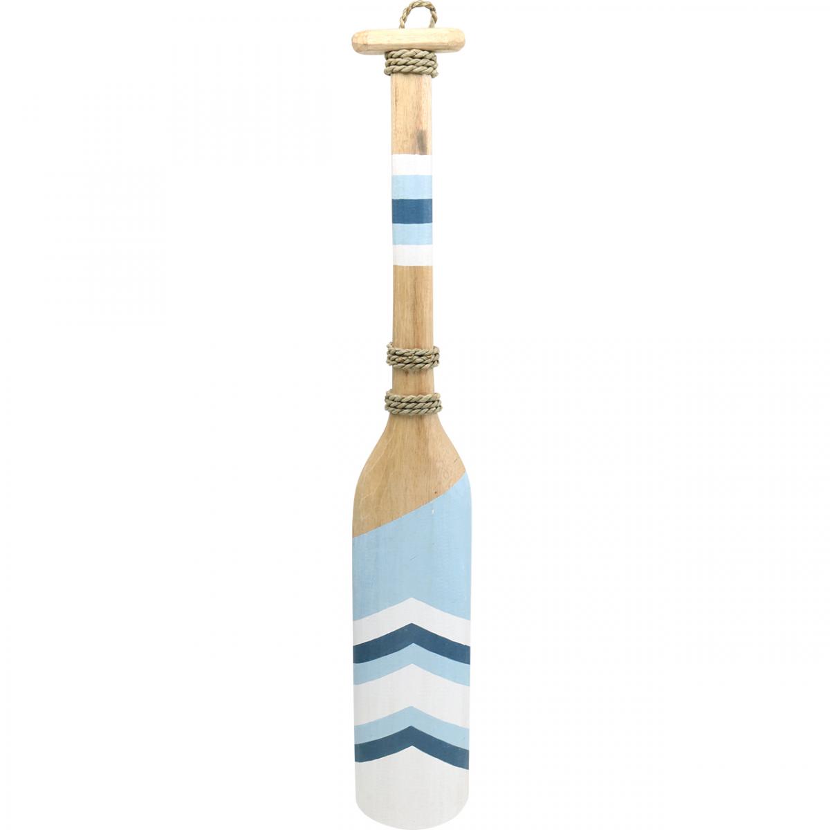 Den dekorative padlen i tre setter deg i feriestemning. Den originale veggdekorasjonen er håndlaget av lyst tre og malt med et trefarget mønster. I tillegg er åren dekorert med naturfibersnorer som minner om tau. Dette skaper en flott maritim dekorasjon som ikke bare ser veldig autentisk ut på veggen og som festdekorasjon.