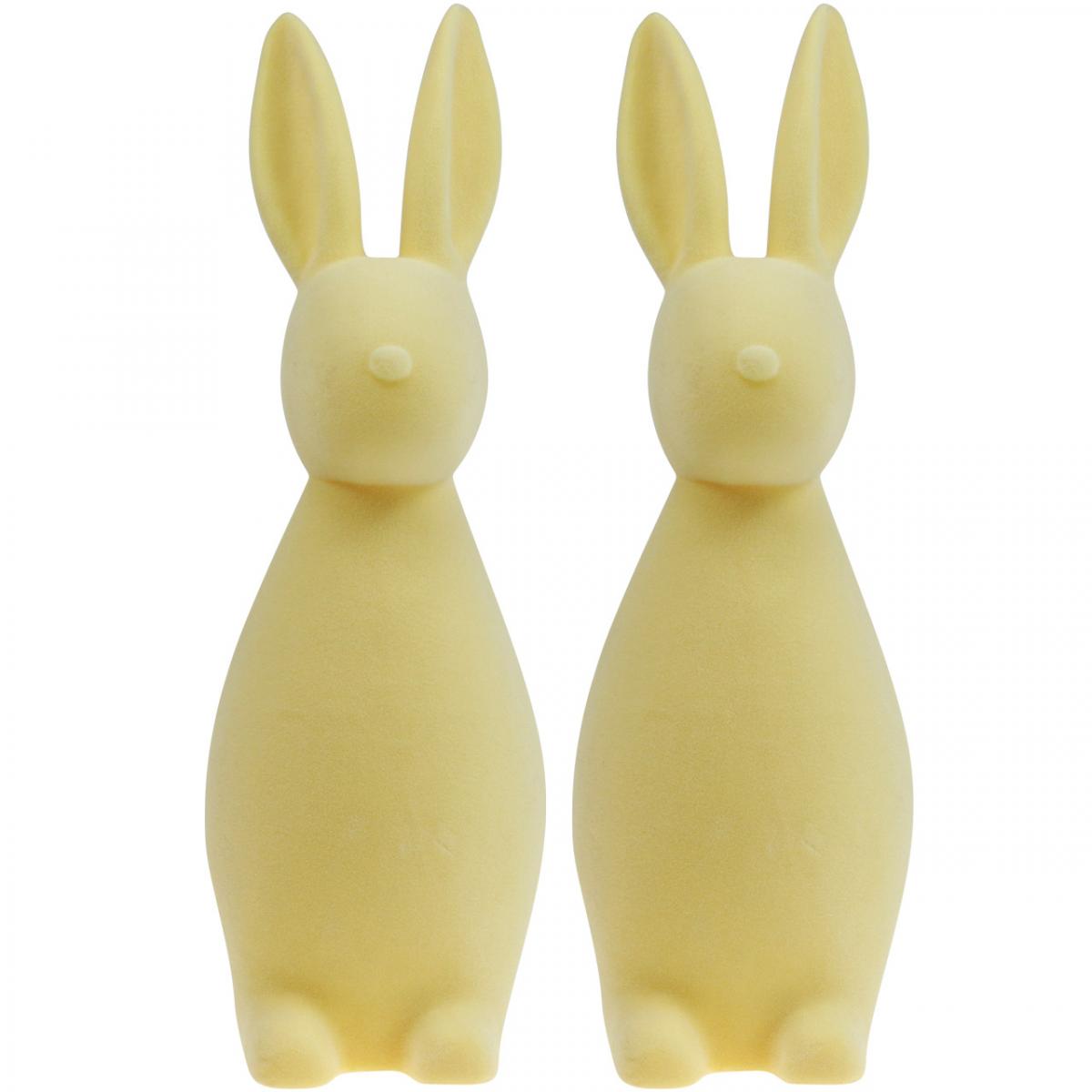 Produktnavn: Dekorativ påskehare – 2. valg – Flokket Lysegul H29,5cm 2 stk