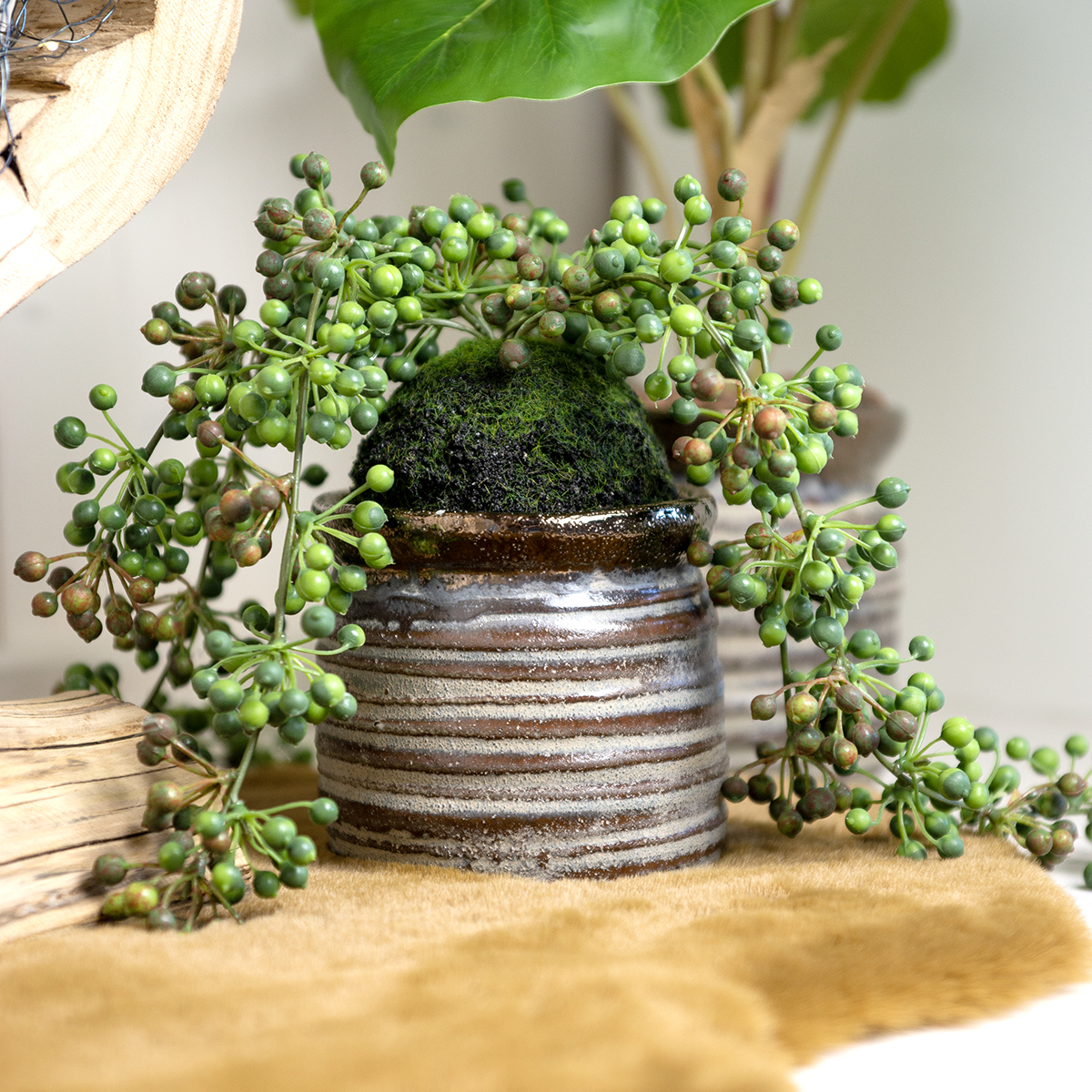 Den keramiske plantekassen imponerer med sin førsteklasses materialkvalitet. Den tofargede, stripete glasuren og de forseggjorte metallfargede kantene setter spesielle aksenter og gir hvert eksemplar en individuell karakter. Dette betyr at hver gryte er unik med et lite vintagepreg, ideell for å skape en rustikk, koselig atmosfære, enten det er i stuen, på balkongen eller som stilig borddekorasjon for restauranter.