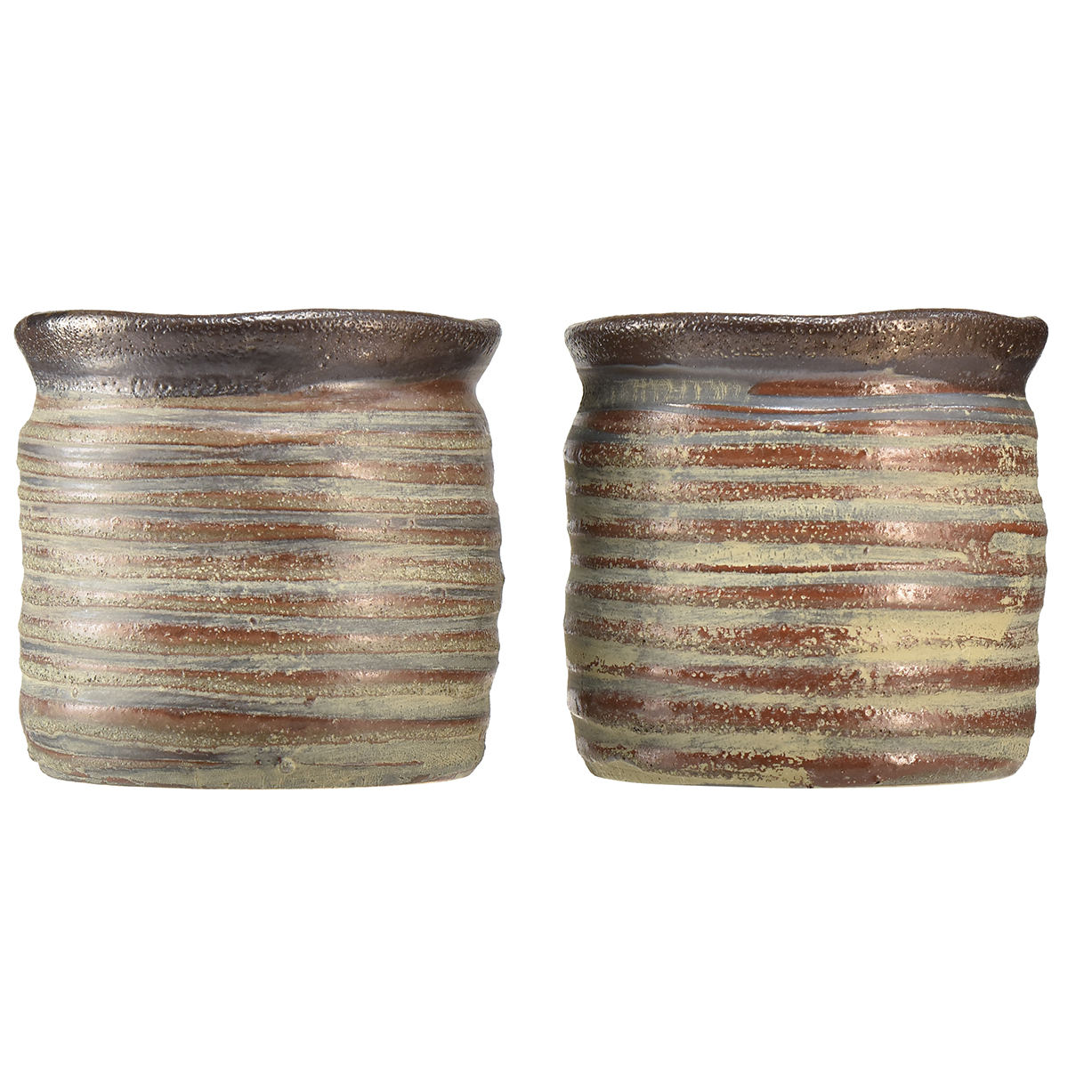 Dekorativ plantekasse keramikk metallic brungrå 10,5×10cm 2stk
