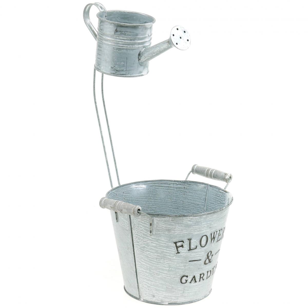 Dekorativ plantekrukke, bøtte med potte, plantekrukke, metallbøtte H38cm Ø16,5cm/Ø7cm