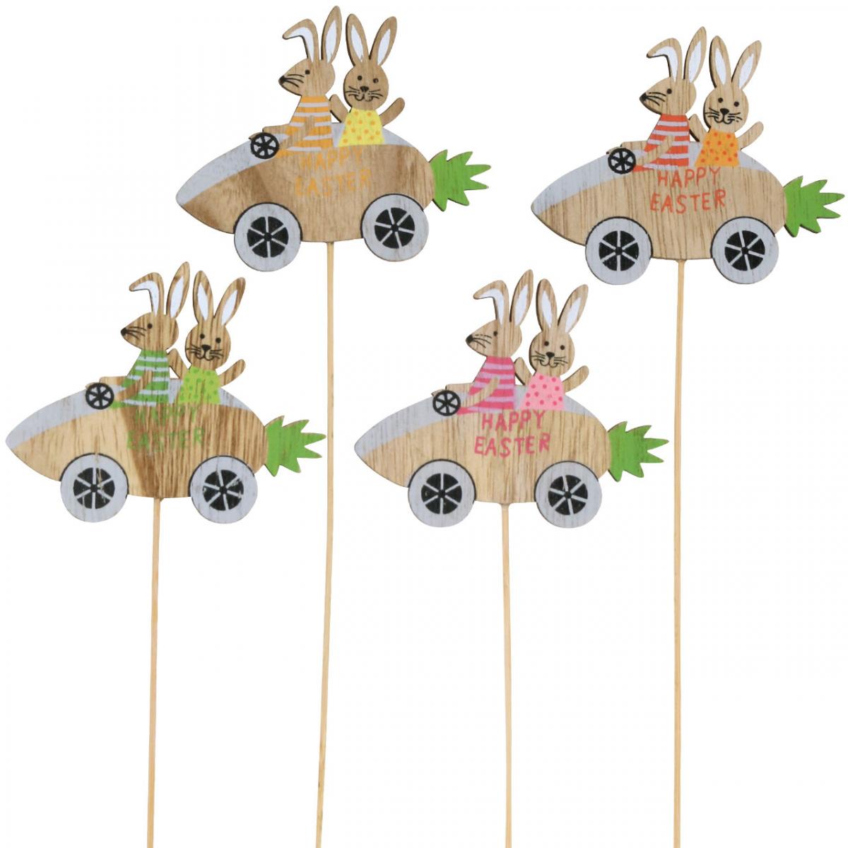 Du får totalt 16 firefarge assorterte pynteplugger med kaninene i bilen, det vil si fire påskeharer på pinnen av hver fargevariant.