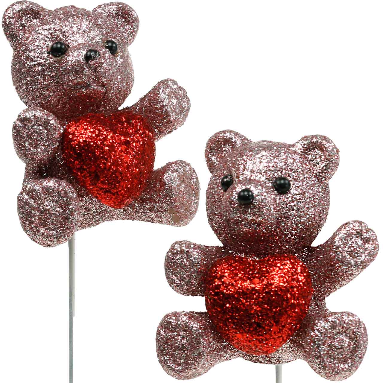 Dekorativ pluggbjørn med hjerte, Valentinsdag, blomsterpluggglitter 9 stk