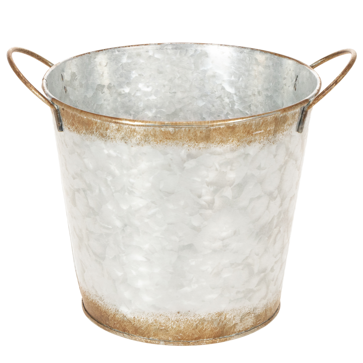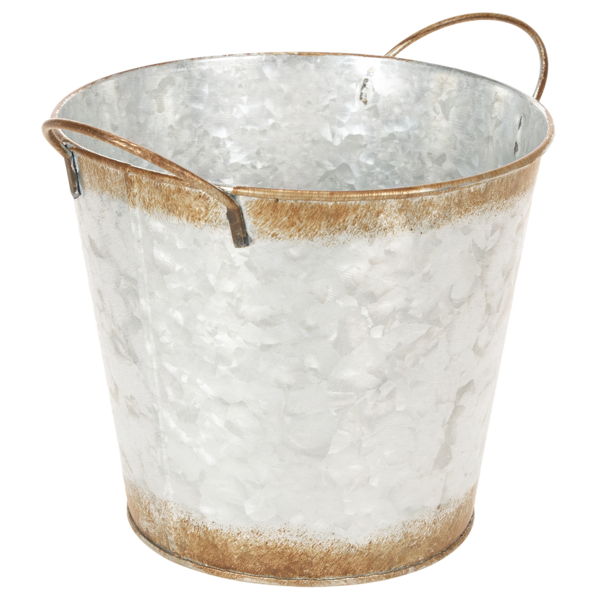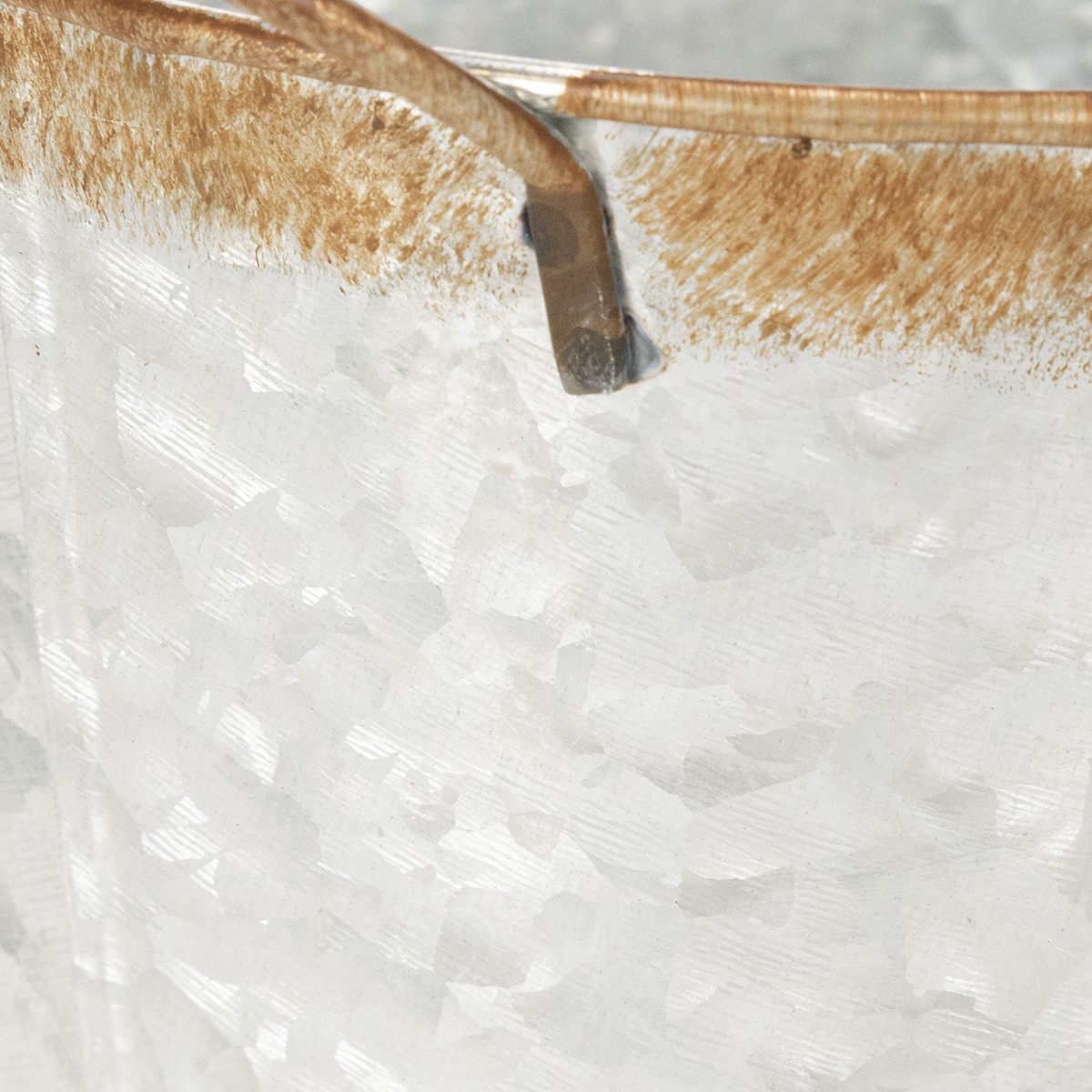 Dekorativ potte med håndtak, plantebøtte, metallbeholder, sølv, forvitret stål, Ø17 cm H16,5 cm