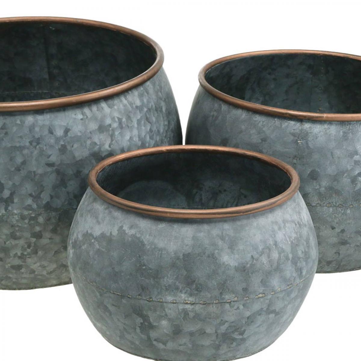 Dekorativ potte, planteskål, metallkar sølv, kobberfarget antikk look H22 / 20,5 / 16,5 cm Ø39 / 30,5 / 25 cm sett med 3