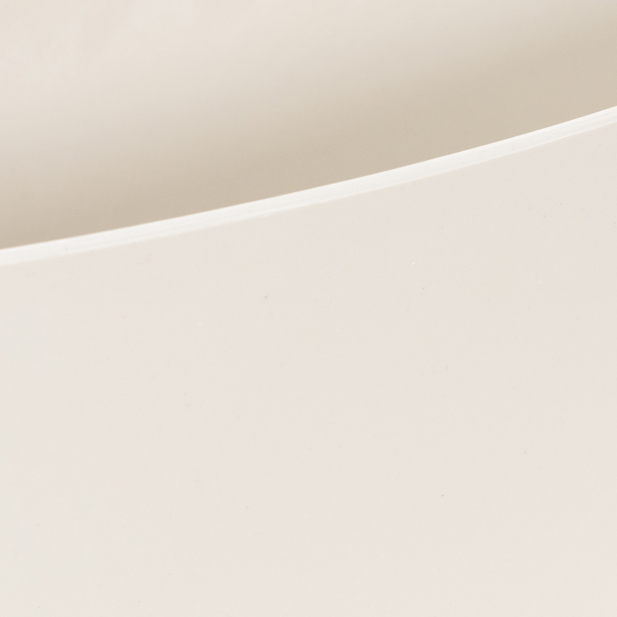 Den beige dekorative skålen er omtrent 17,5 centimeter høy og 55,5 centimeter bred. Den beige fargen lar deg kombinere denne dekorative skålen med en rekke sterke farger!