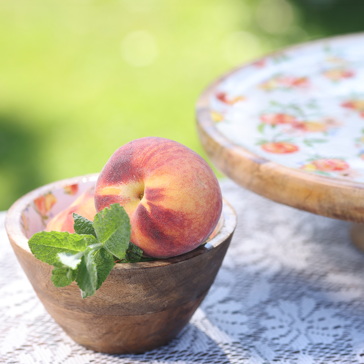 Vår mangotrebolle bringer rustikk sjarm og naturlig eleganse direkte til hjemmet ditt. Med sin unike kombinasjon av et marmorert, sommerlig ferskenmotiv på innsiden og ubehandlet, naturlig mangotre på utsiden, er denne trebollen et blikkfang i enhver innredning. Denne bollen kombinerer funksjonalitet og design, noe som gjør den perfekt for å presentere mat. Enten som et midtpunkt på bordet på sommerfester eller som en stilig dekorasjon på terrassen eller i stuen – den runde mangotrebollen vil garantert imponere. Dens unike og skjønnhet appellerer spesielt til folk som har en forkjærlighet for landlig stil eller bohemsk kultur og ønsker å bringe et stykke natur inn i hjemmet sitt. Bollen kan kompletteres med matchende tilbehør fra Floristik24, for eksempel stearinlys eller fargekoordinerte dekorative gjenstander, for å skape en harmonisk stil.