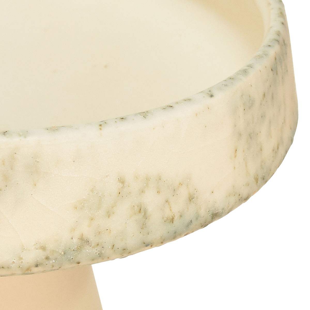 Lys opp hjemmet ditt med et snev av rustikk sjarm. Denne kremfargede keramikkskålen med nyanserte grågrønne aksenter er et ekte blikkfang for ethvert rom. Det karakteristiske steintøysutseendet på grunn av fine sprekker gir hvert stykke unikhet og skaper en koselig atmosfære. Dette gjør den dekorative skålen perfekt for allsidige dekorasjonsmuligheter.