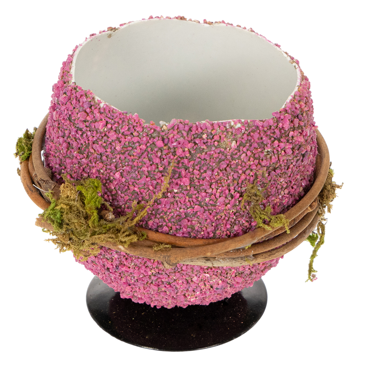 Dette planteegget er ikke bare påskepynt; det er et must for enhver vårdekorasjon. Metallbasen gir stabilitet og løfter egget litt, noe som gir det et spesielt elegant utseende. Kombinasjonen av naturlige materialer som mose og kvister med livlige, vårlige farger gjør dette dekorative høydepunktet til et allsidig blikkfang.